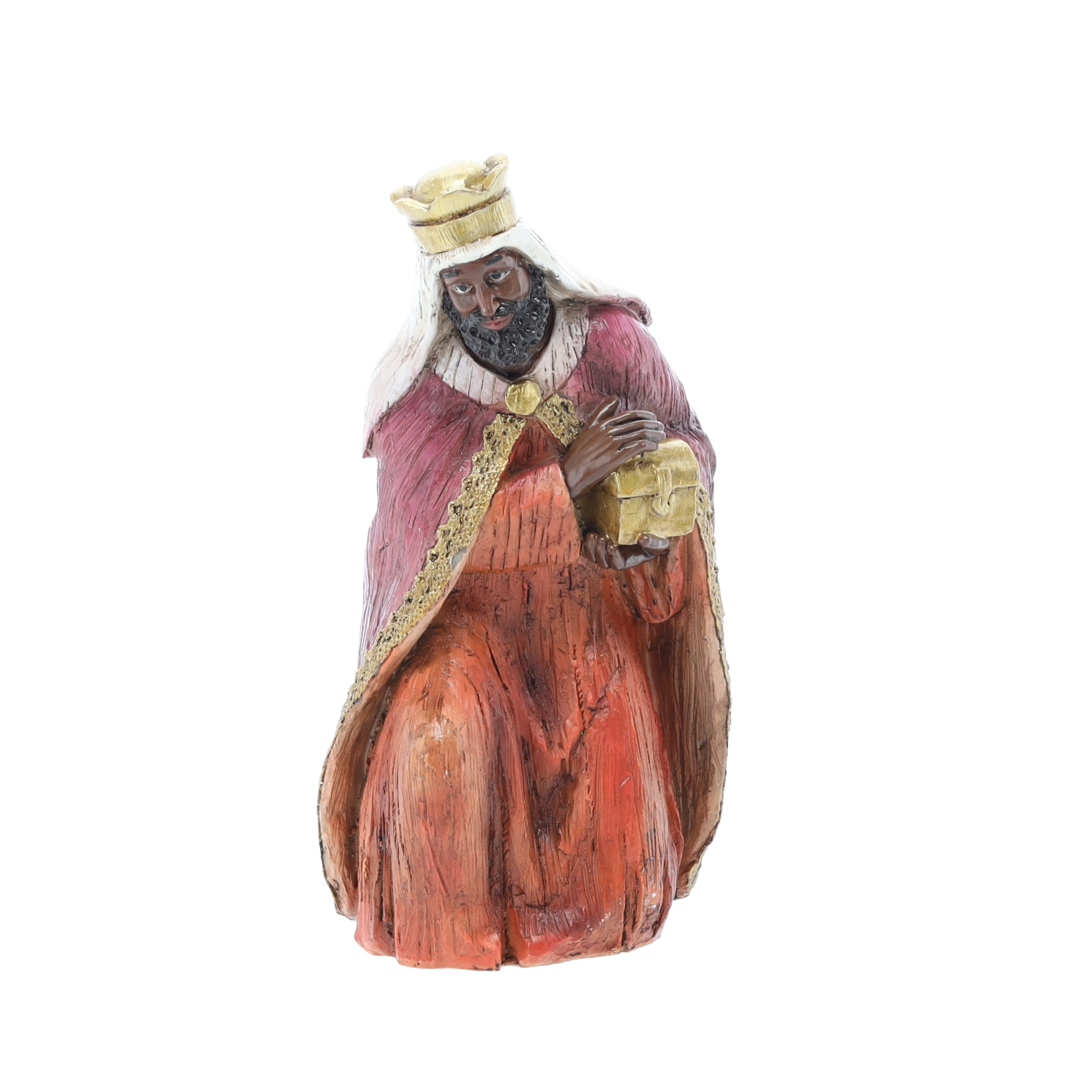 Fine ansigtstræk, foldninger i klæderne og rige farver giver krybben en unik charme og et tidløst udtryk, velegnet til både klassiske og moderne interiører.
