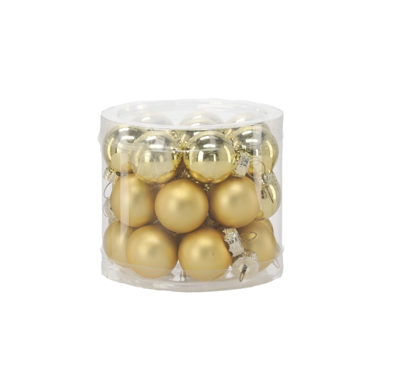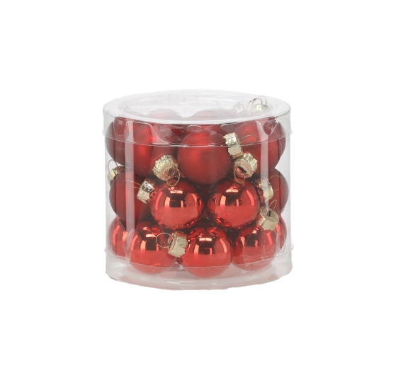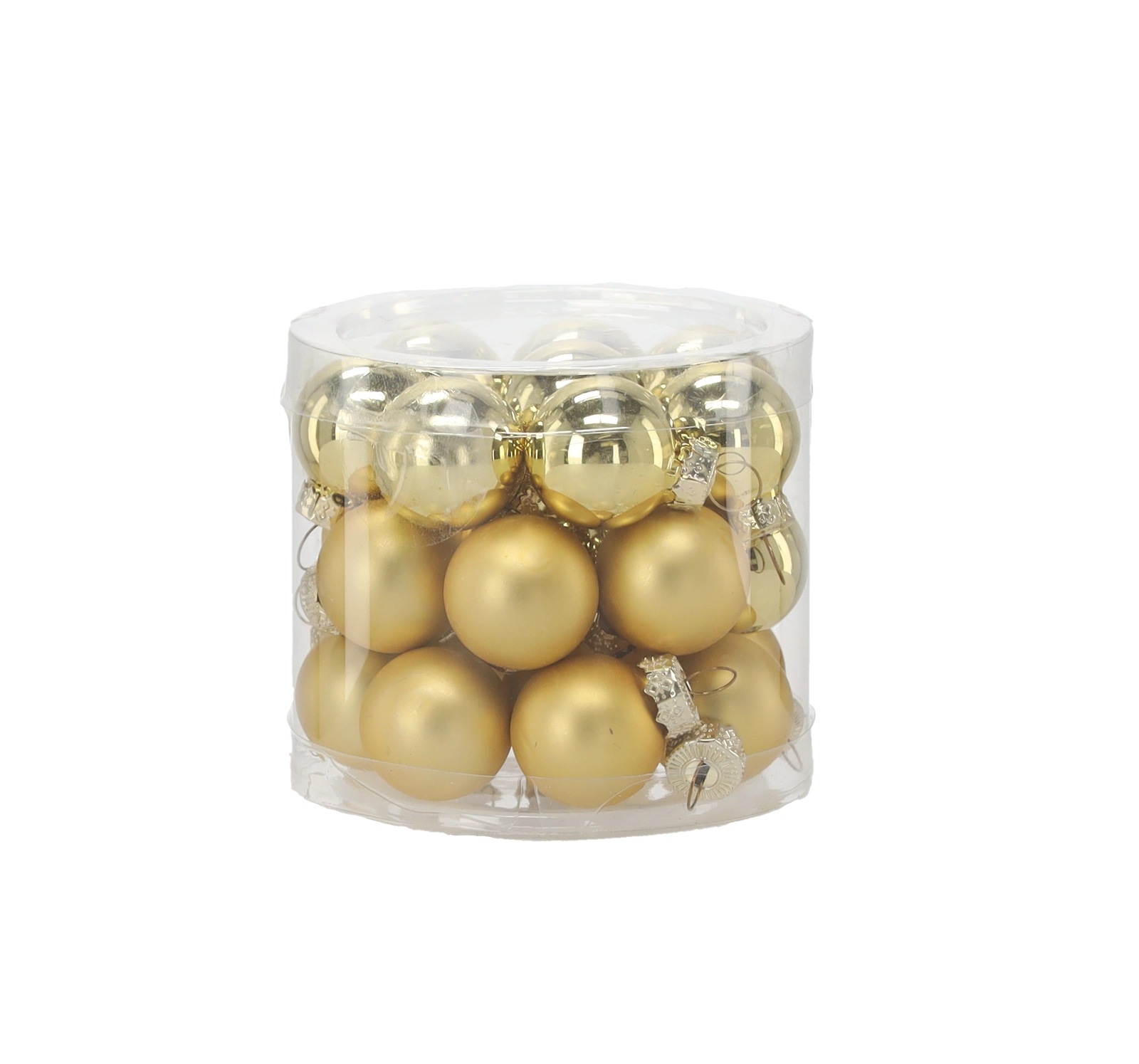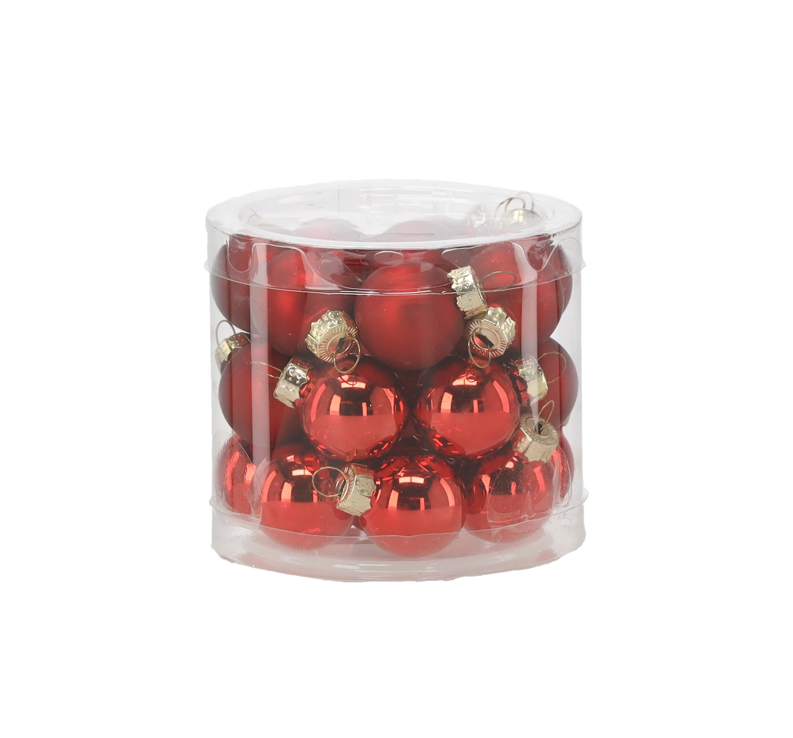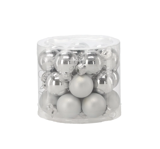 Elegant sæt med 24 glasjulekugler i en diameter på 2,5 cm, der tilfører interiøret en fin glans og klassisk julestemning. Kombinationen af matte og blanke overflader skaber en markant kontrast, som får juletræet, kranse og dekorative arrangementer til at stråle. Takket være den kompakte størrelse passer de perfekt selv på mindre træer, og farvemixet gør dem nemme at matche.