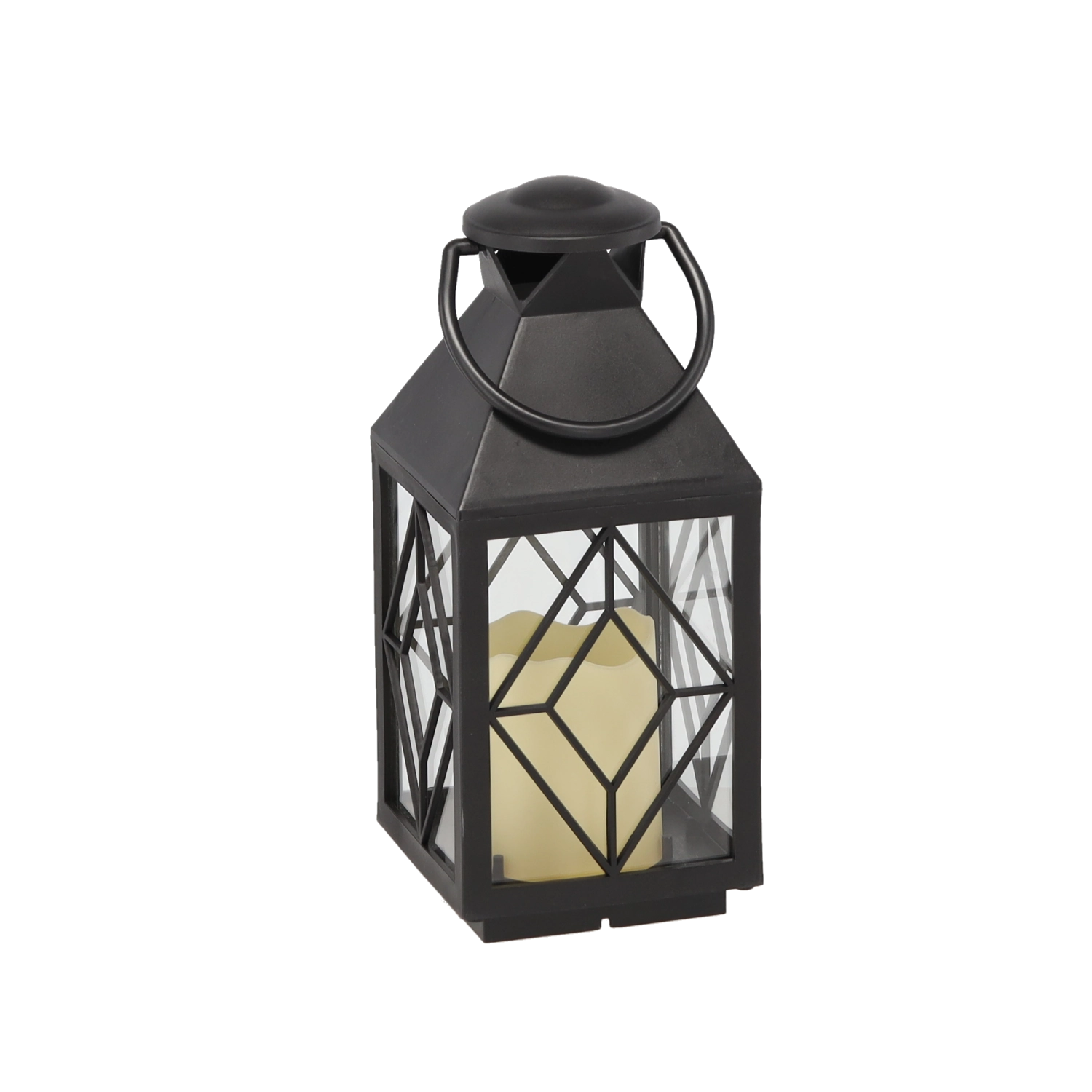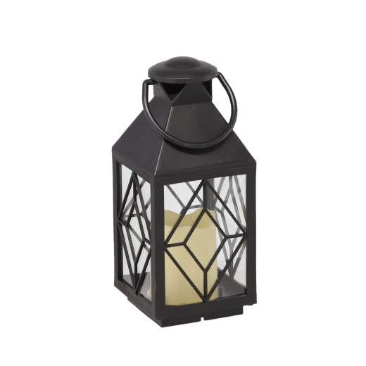 Sort metalanterne med glaspaneler og gittermønster giver en imponerende lyseffekt, der fremhæver både indendørs og udendørs omgivelser. Den integrerede LED-lyskilde giver et behageligt varmt lys uden åben flamme, hvilket gør den ideel i hjem med børn eller kæledyr.