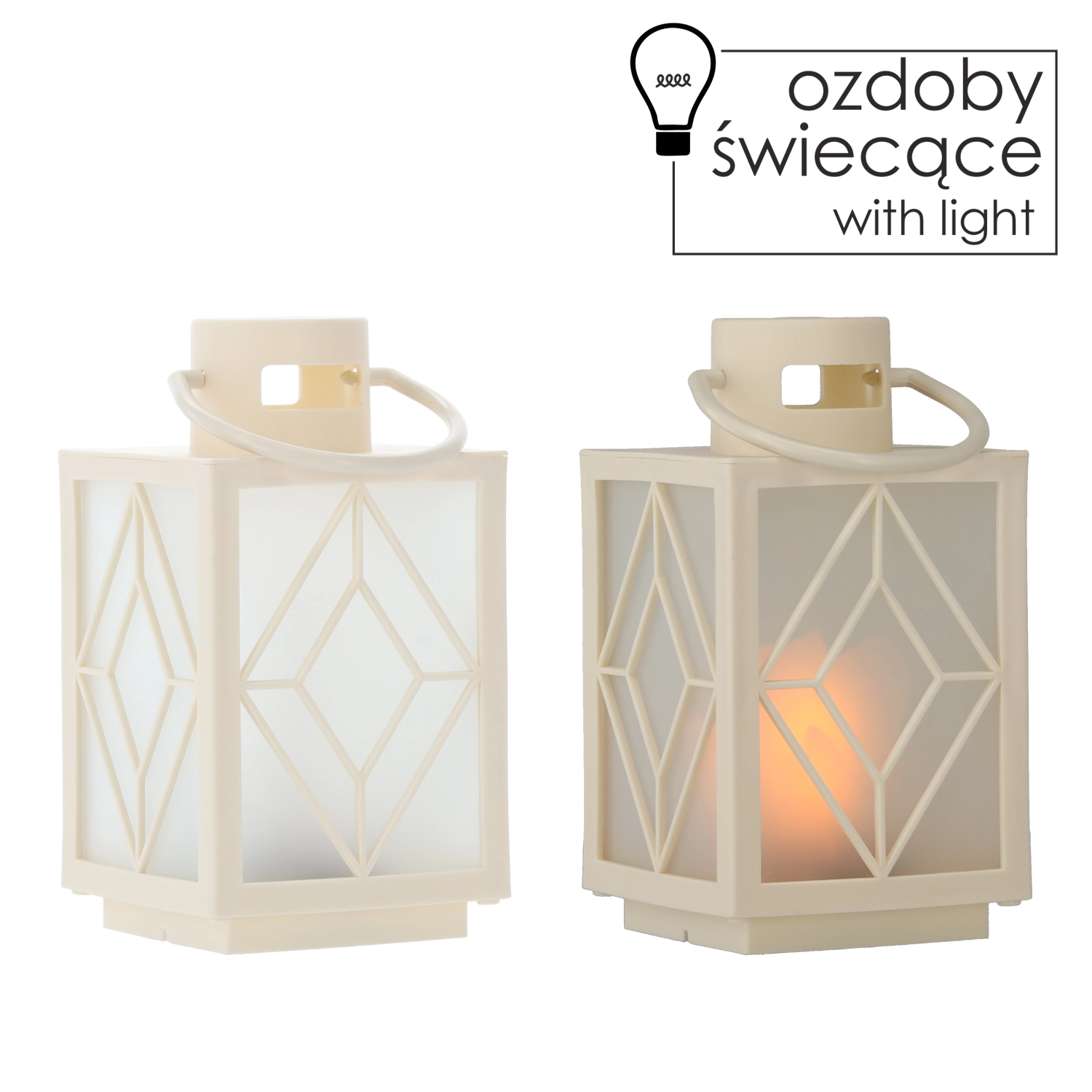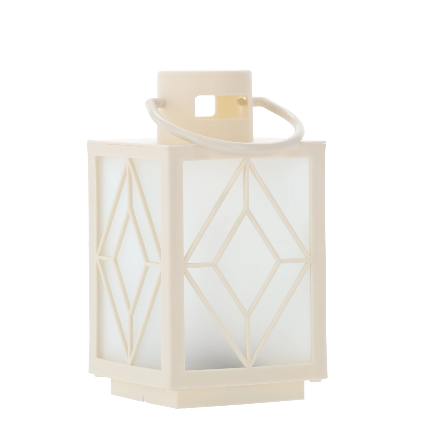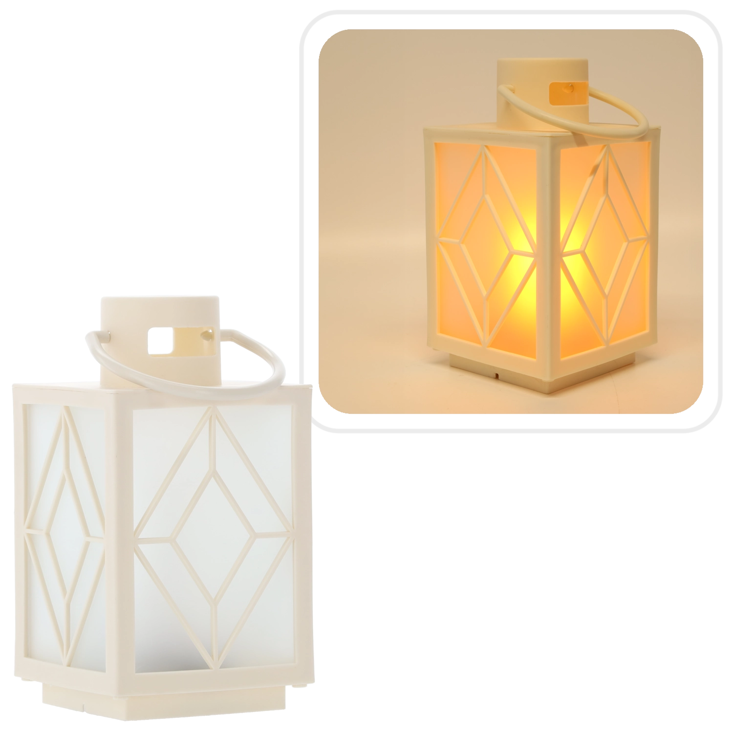 Pynt hjemmet med et blidt, varmt lys. Den hvide dekorative lanterne med frostede fyldpaneler og geometrisk motiv giver en behageligt diffus belysning, der minder om et stearinlys, men uden røg og voks. Ideel til adventspynt, aftenhygge eller festligt bord.