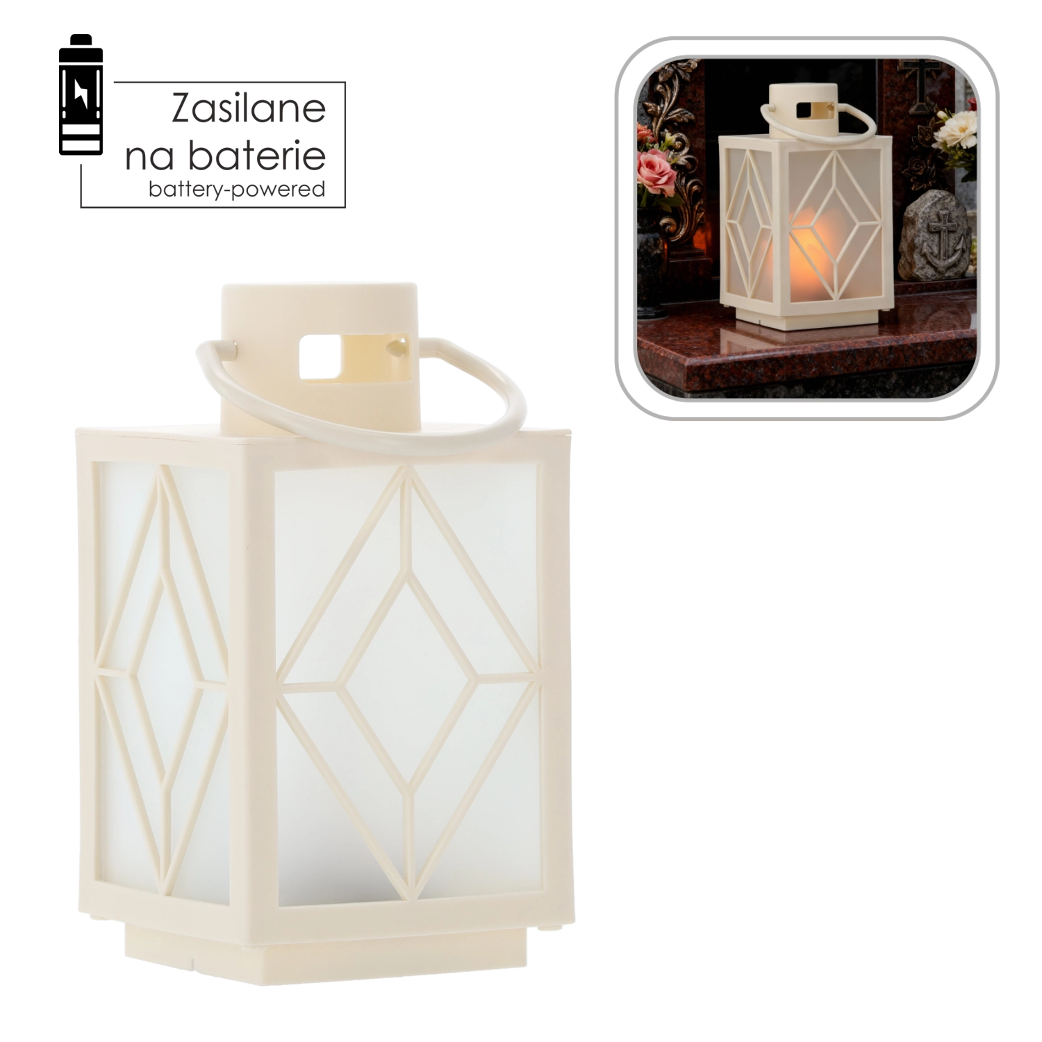 Takket være batteridrift er lanternen fuldt transportabel – stil den nemt på en hylde, terrasse eller gravsted. Det solide håndtag muliggør ophængning og hurtig flytning efter behov.