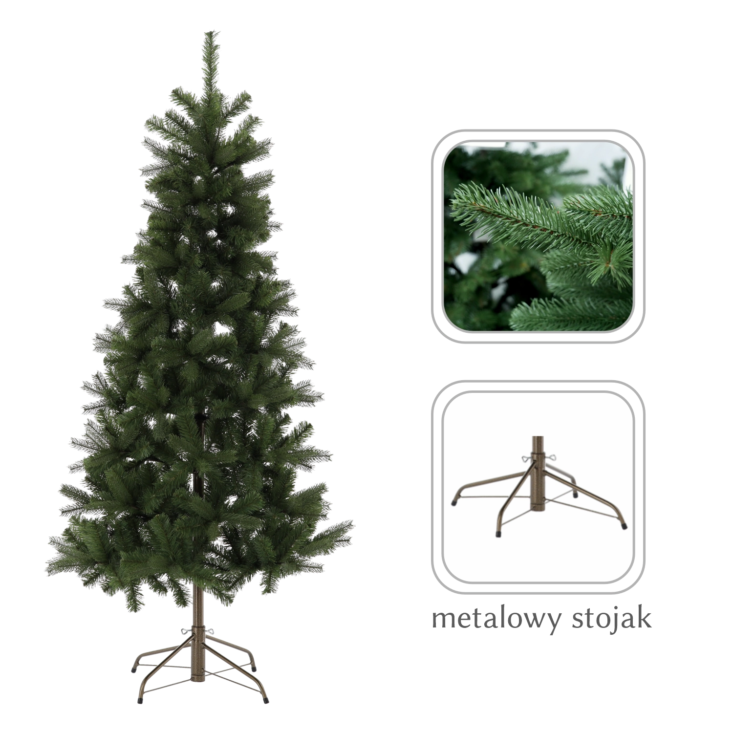 Elegant kunstigt juletræ EXTRALINK Modern med en højde på 150 cm tilbyder realistisk udseende, tæt nåleværk og stabil metalstander. Takket være holdbare materialer og nem montering er det det ideelle valg til en ren, bekvem og stilfuld juleudsmykning uden nedfaldne nåle.