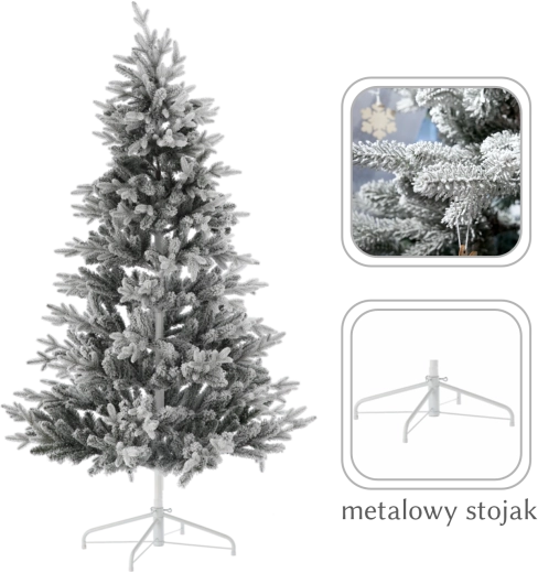 Skab en magisk julestemning derhjemme med det kunstige træ AGATA i en højde på 150 cm. Takket være de realistiske grene og effekten af snedrys fremstår træet naturligt og elegant. Det er lavet af kvalitets-PVC, er robust og holdbart, og takket være metalstativet står det stabilt. Den kompakte størrelse passer både i mindre og større rum og kræver ingen krævende vedligeholdelse.