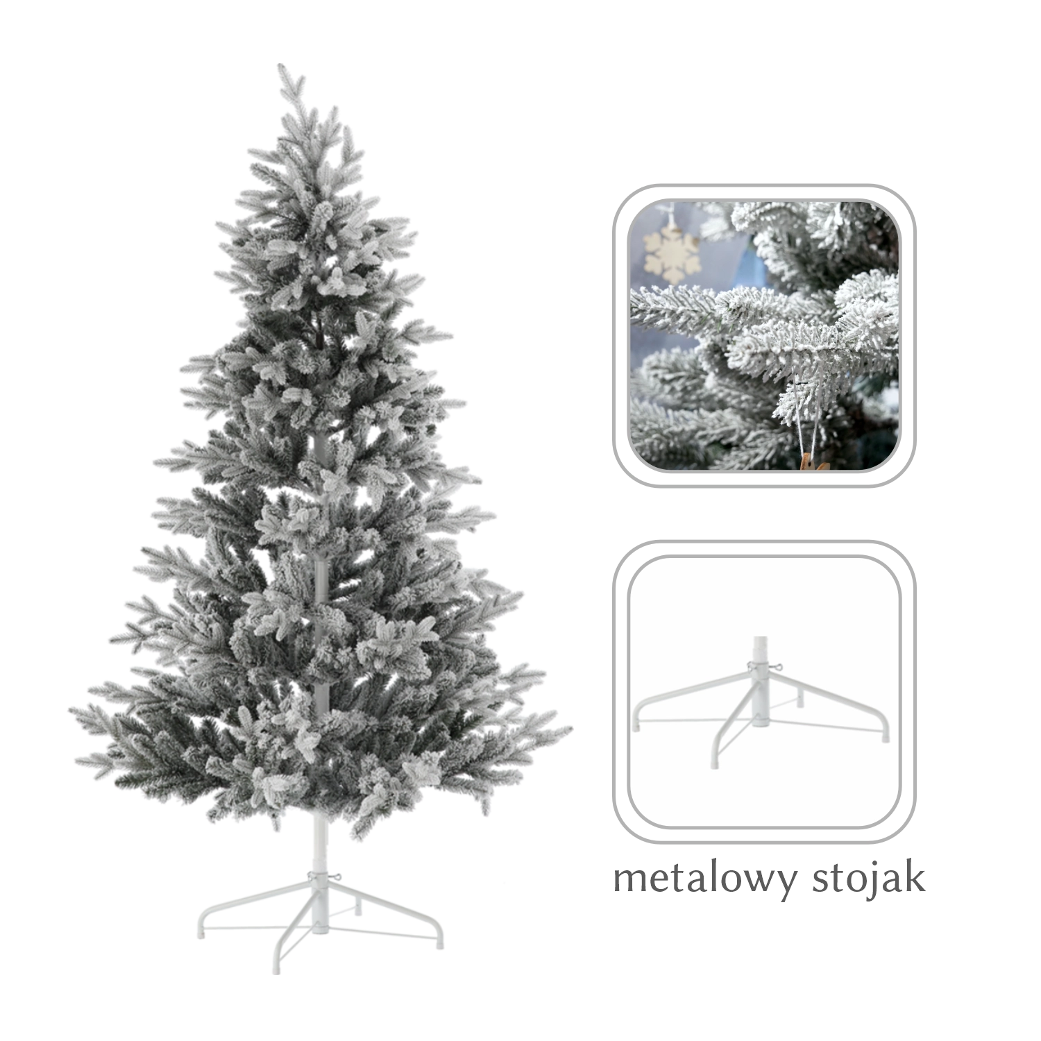 Den kunstige sneklædte gran AGATA er et fremragende valg for dem, der søger en stilfuld og praktisk juledekoration. Naturligt formede grene med hvid frost giver indtryk af et nyfaldent snelag, som tilfører din indretning en festlig charme uden dryssende nåle.