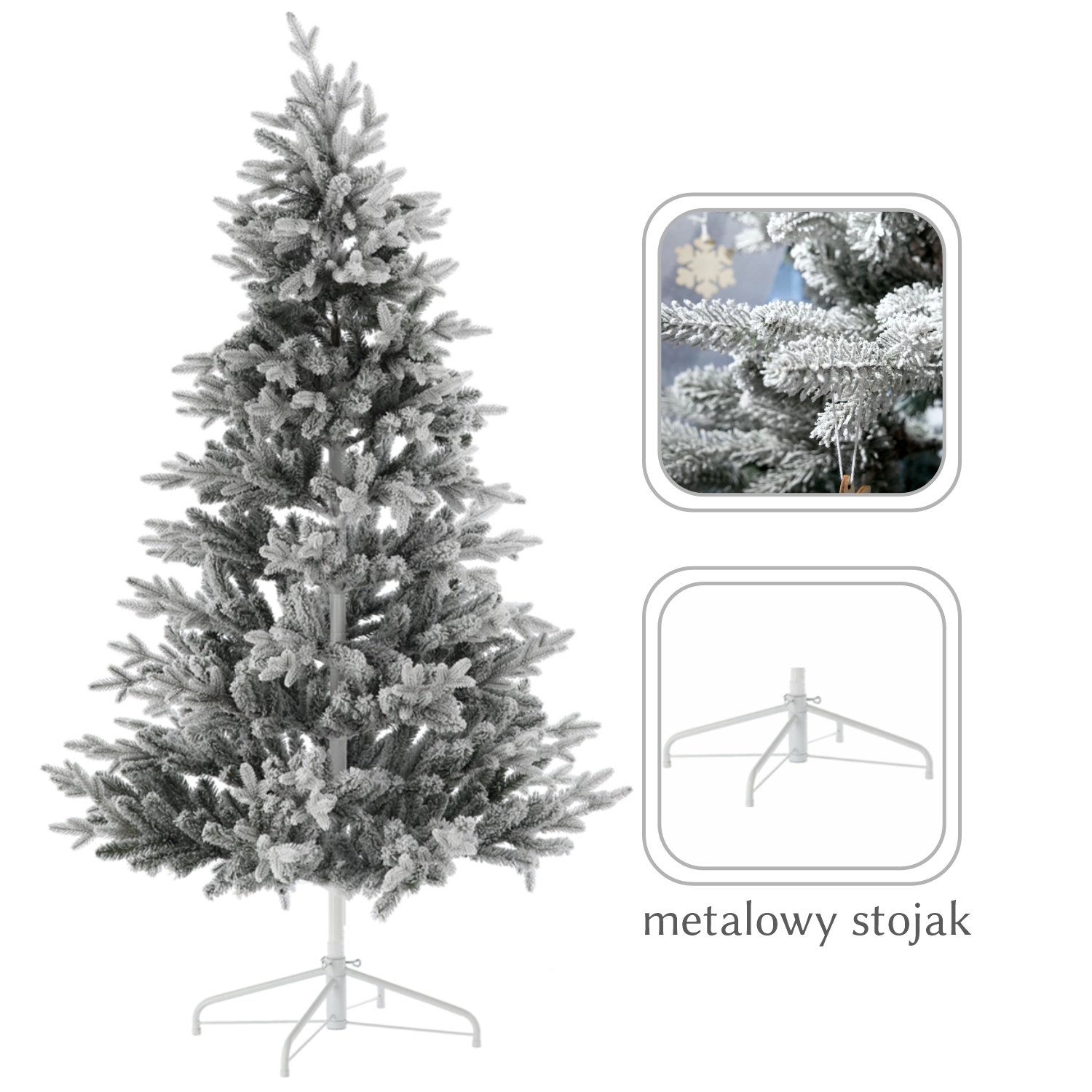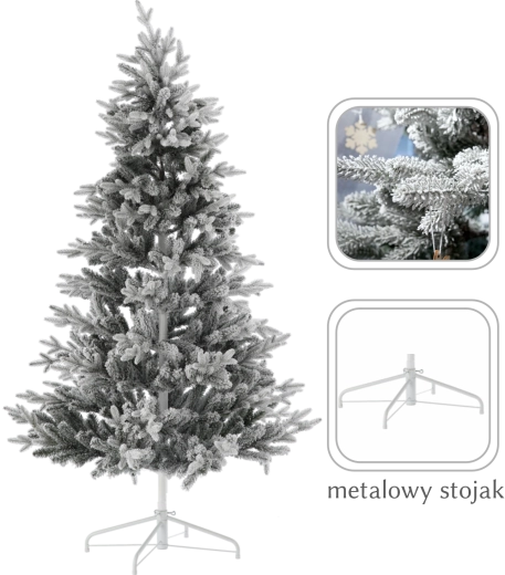 Det syntetiske juletræ Agata med sneeffekt giver et autentisk vinterlook uden nålefald og uden behov for vedligeholdelse. De grønne grene dækket af et fint lag “sne” skaber en festlig atmosfære i enhver indretning – fra private hjem til kontorer og kommercielle lokaler.