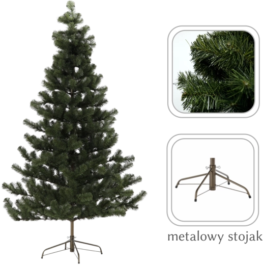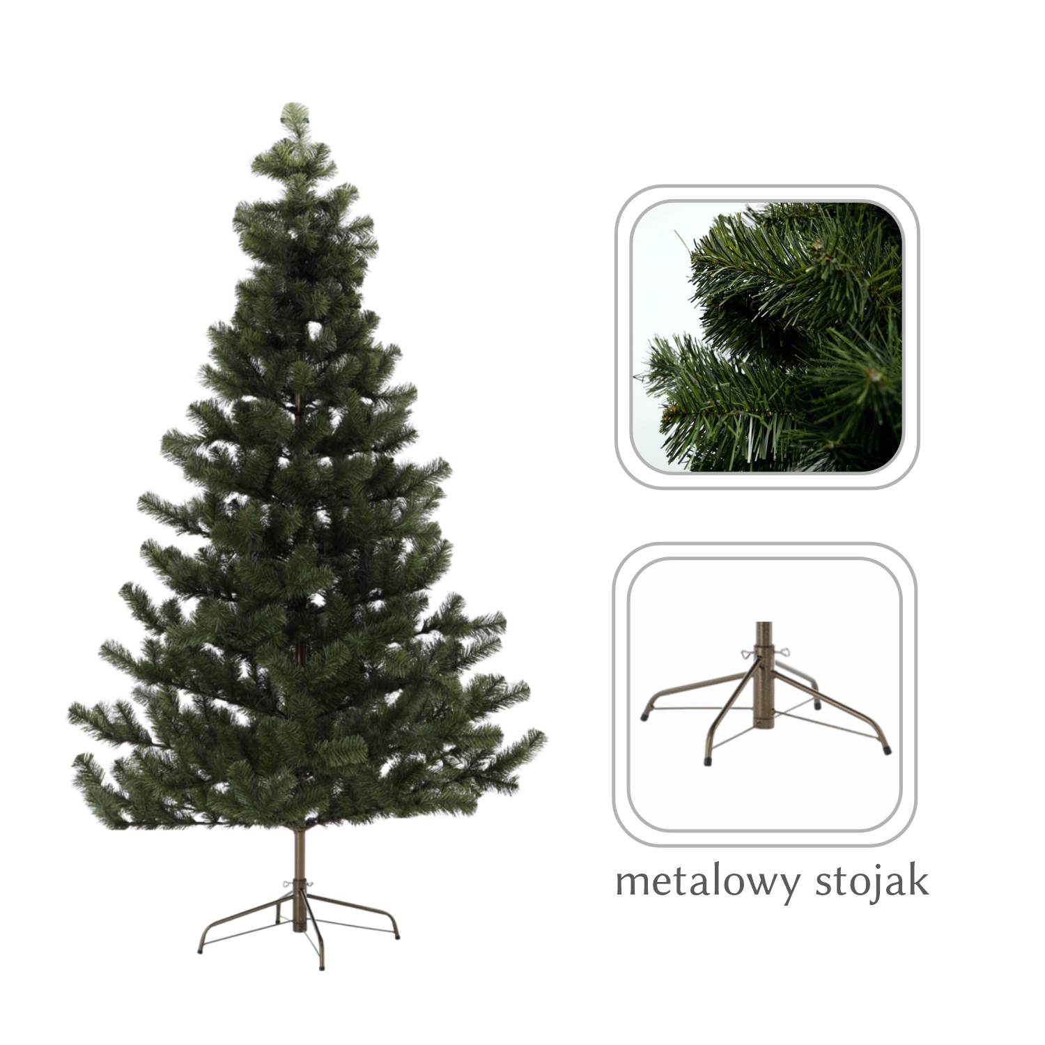 Stilfuldt og holdbart juletræ Renata i højden 150 cm udmærker sig ved et realistisk udseende og dyb grøn farve. Takket være de tætte PVC-grene virker det fyldigt og frodigt, mens det stabile metalstativ sikrer sikker placering gennem hele højtiden. Nem montering og afmontering sparer tid, og gentagen brug gør det til et økologisk og økonomisk valg.