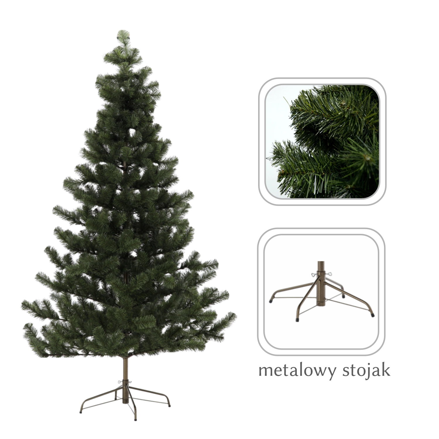 Byd den festlige stemning velkommen med det kunstige juletræ Extralink Renata i en højde på 180 cm. Takket være den omhyggelige udførelse og den dybt grønne farve ligner det et ægte træ, og dets tætte grene, realistiske udseende og stabile metalfod sikrer nem pyntning og sikker placering. Holdbart PVC-materiale, nem montering og afmontering samt ingen nedfaldende nåle betyder færre bekymringer og mere julehygge.