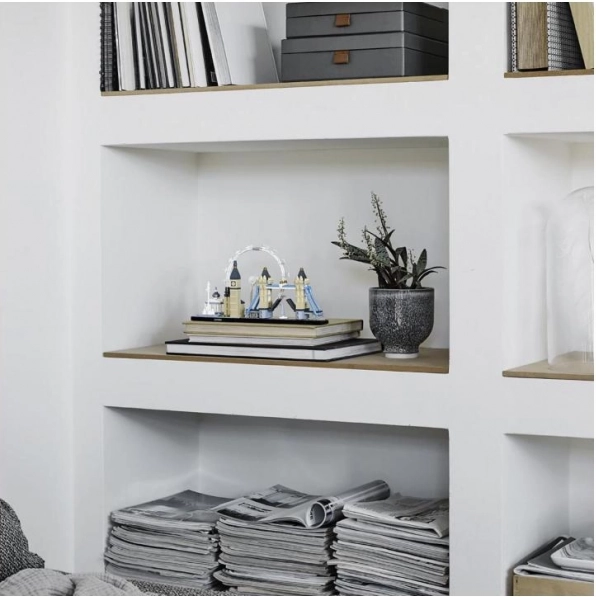 Der mangler ikke gennemtænkte detaljer og funktioner: Tower Bridges fløje kan løftes for at “give plads” til skibe. Der medfølger også en brochure med information om designeren, arkitekturen og historien bag de enkelte bygninger (på engelsk; flere sprog kan downloades på LEGO’s website). Denne model er ideel til udstilling derhjemme eller på kontoret og vil glæde alle, der elsker arkitektur, historie og design.