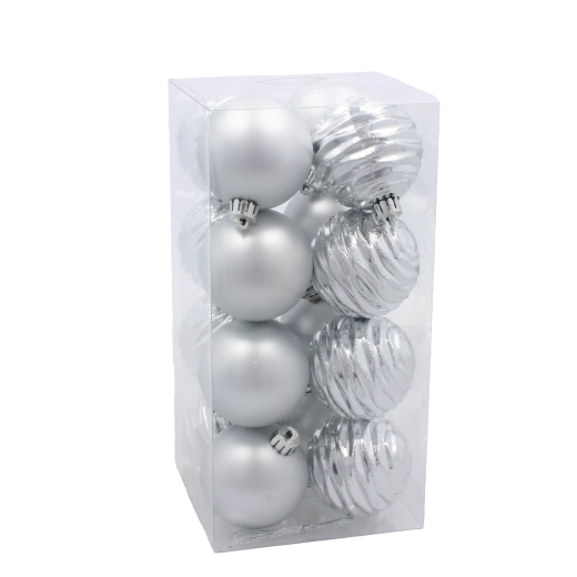 Dette elegante sæt kombinerer tre af de mest populære julefarver for en perfekt koordineret udsmykning. Den høje kvalitet i holdbar plast og de blanke og strukturerede overflader giver interiøret et luksuriøst udtryk og skaber en magisk, festlig atmosfære.