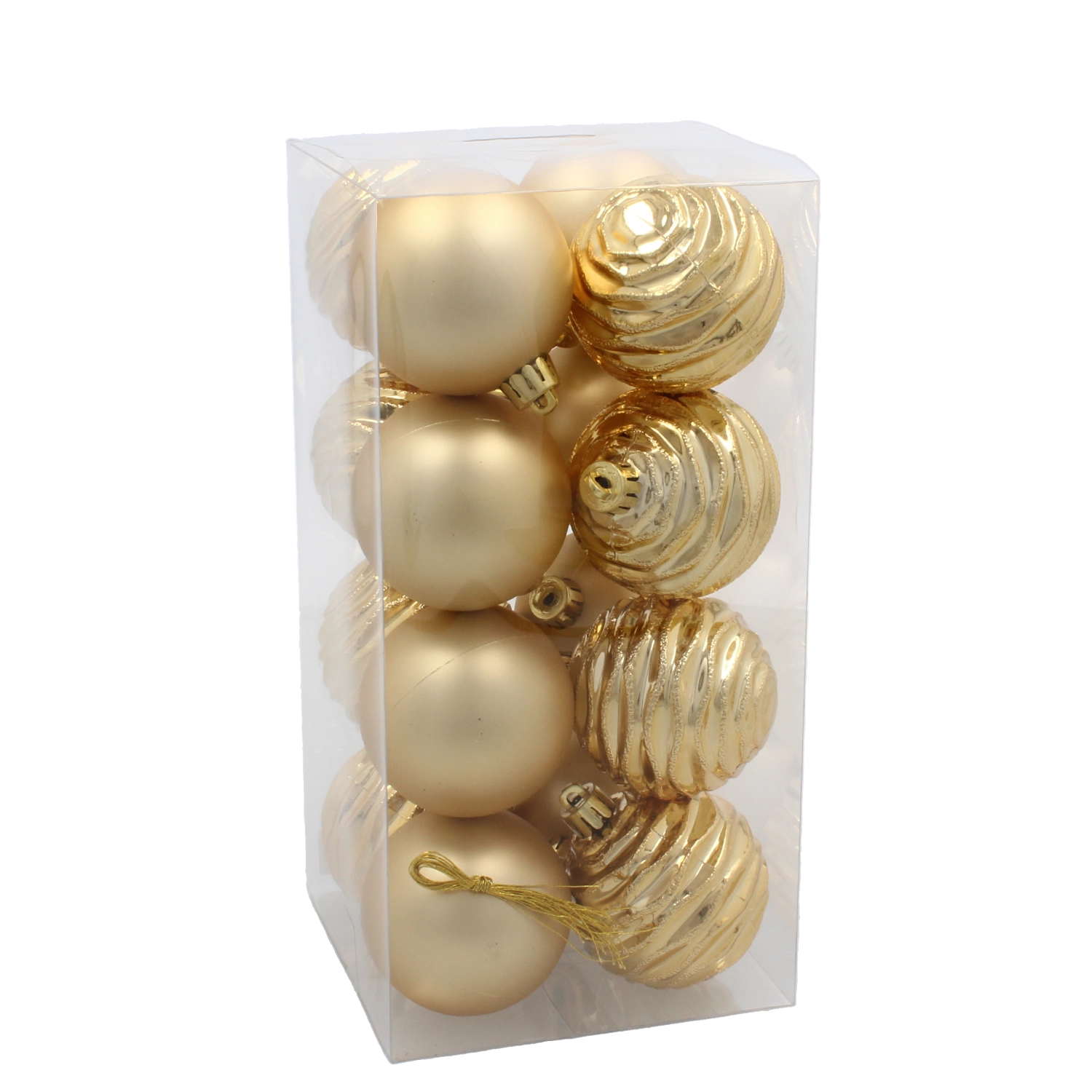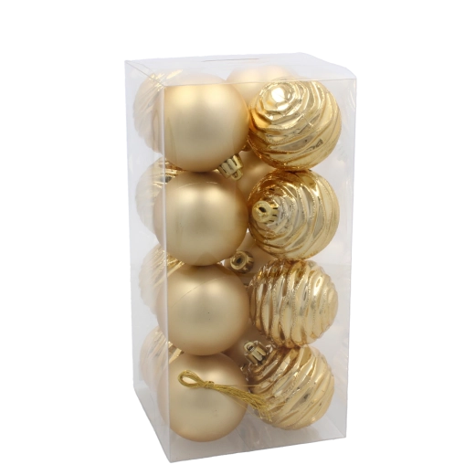 Giv dit træ klassisk glans med et sæt på 16 julekugler med en diameter på 6 cm i rød, guld og sølv. Holdbar plast og en blank overflade sikrer smukke lysreflekser og lang levetid – ideel til juletræer, kranse, guirlander og andre dekorationer.