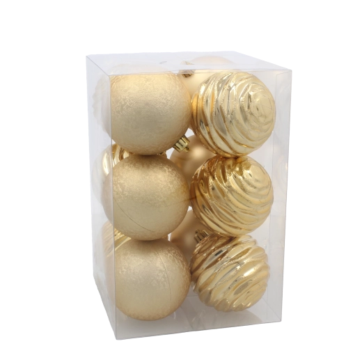 Dette alsidige sæt julepynt kombinerer tre tidløse farver – rød, guld og sølv – så du nemt kan matche udsmykningen i både traditionelle og moderne interiører. Let og holdbar plast sikrer nem ophængning og lang levetid uden bekymring for at noget går i stykker.