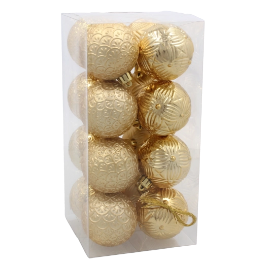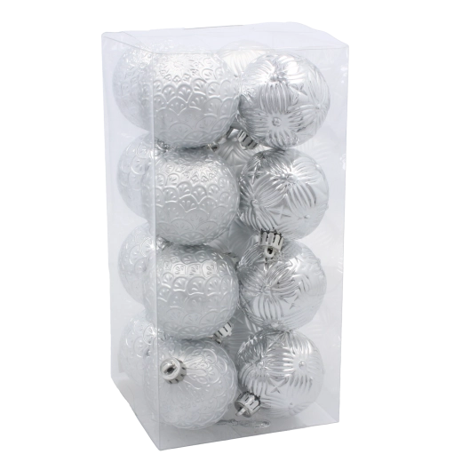 Hver kugle har en metalhætte og en snor i guld- eller sølvfarve til hurtig og nem pyntning af grene, kranse og guirlander.