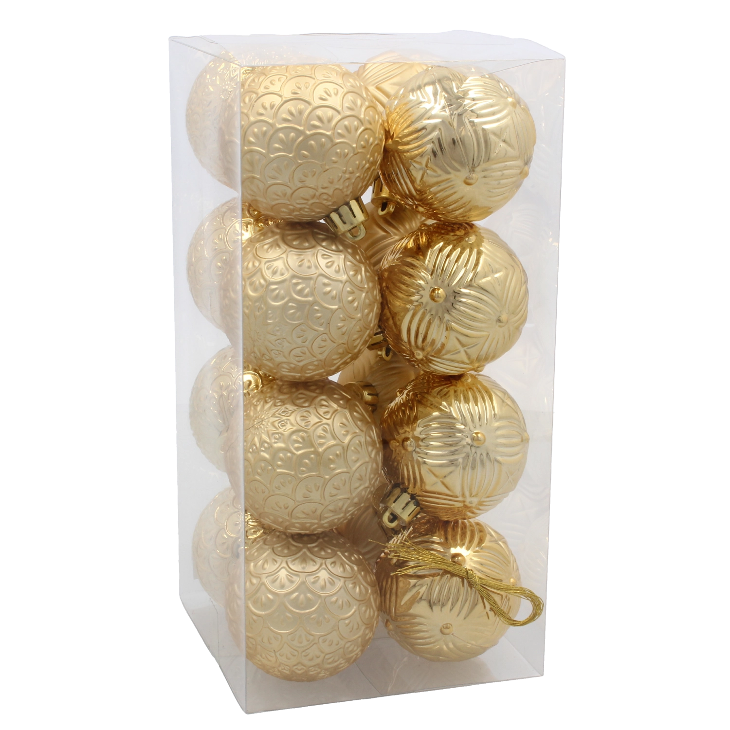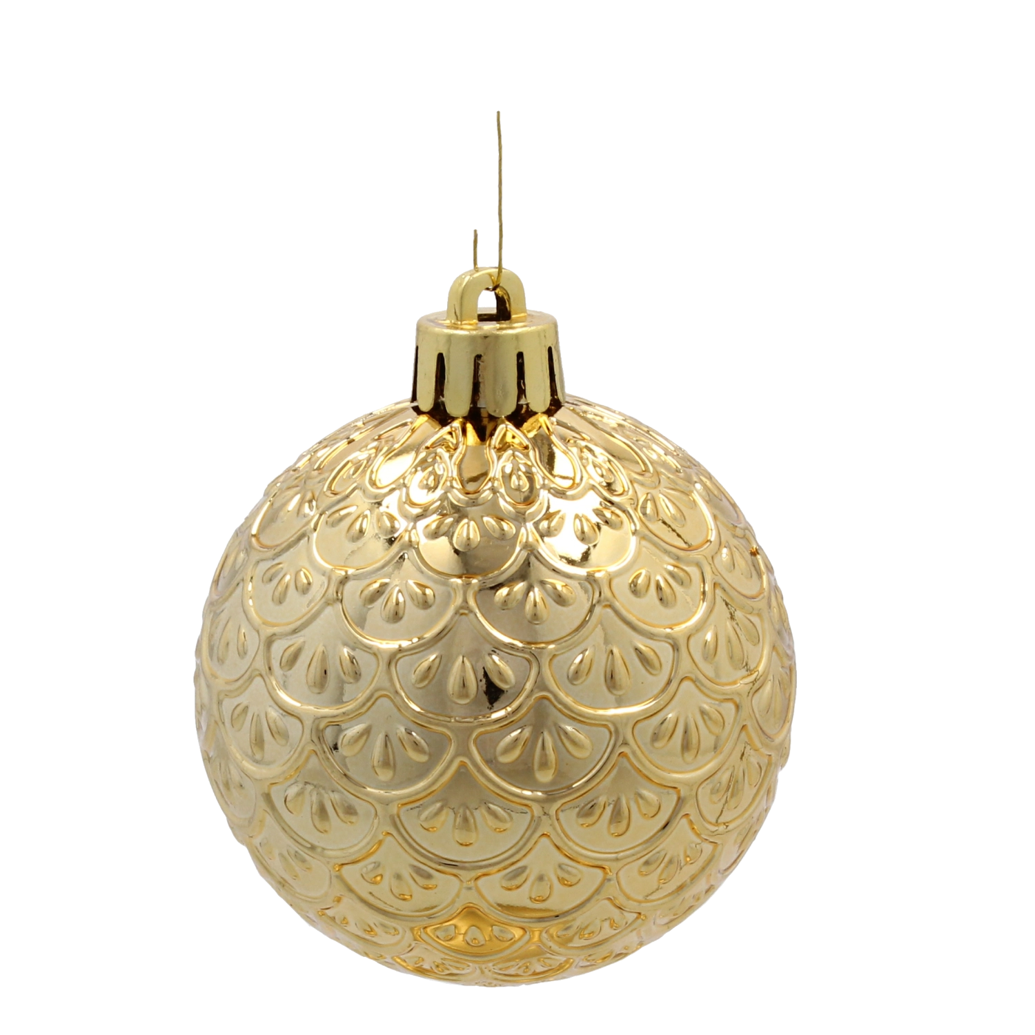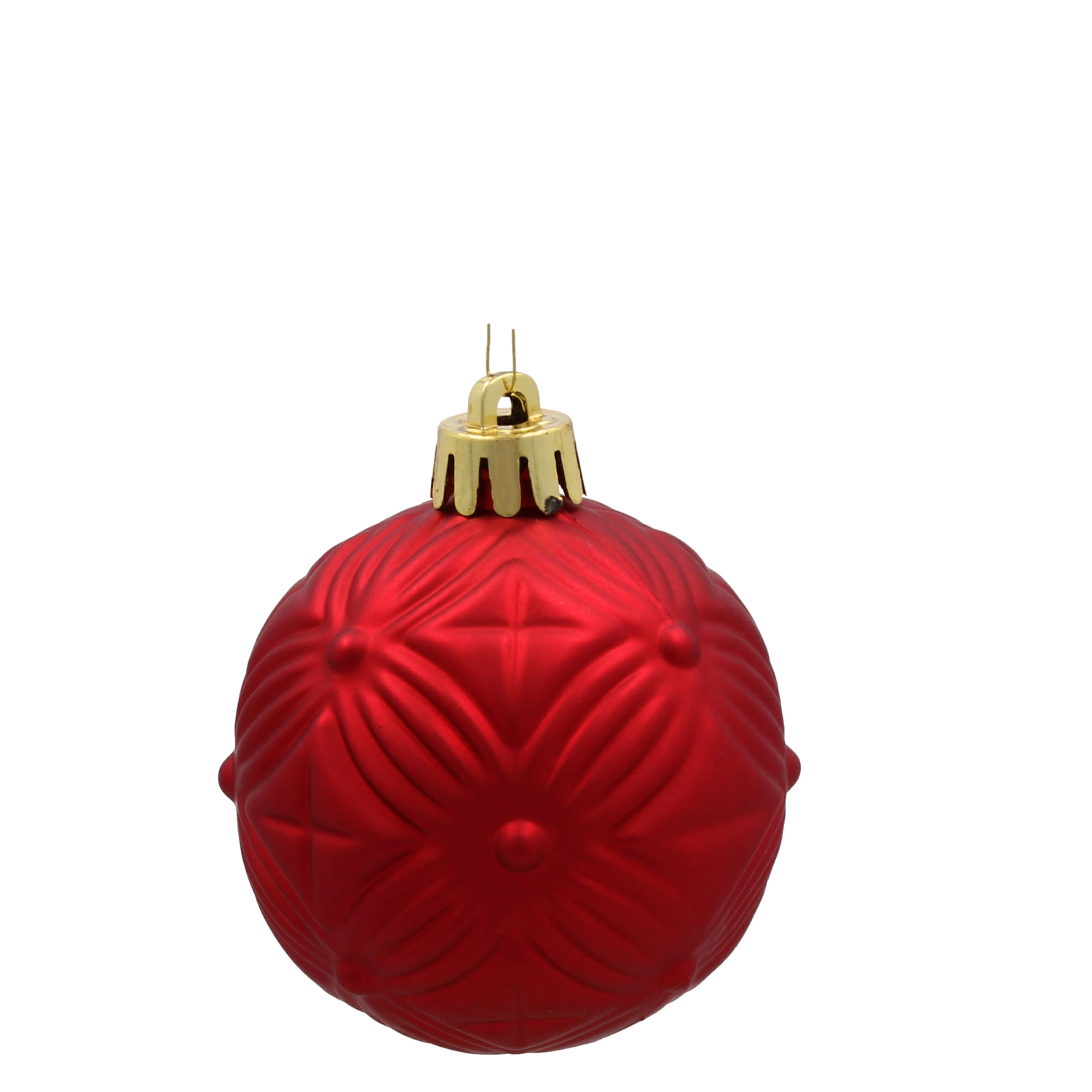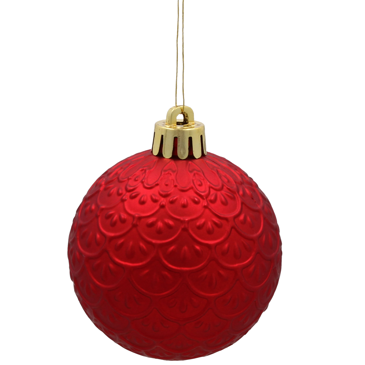 Dette alsidige sæt pynt i harmoniske nuancer af rød, guld og sølv skaber straks en festlig stemning. Hver kugle er let, har præget dekoration og er udstyret med metalhætte og snor for nem ophængning på grene, kranse eller guirlander. Det robuste plast sikrer lang levetid selv ved hyppig håndtering.