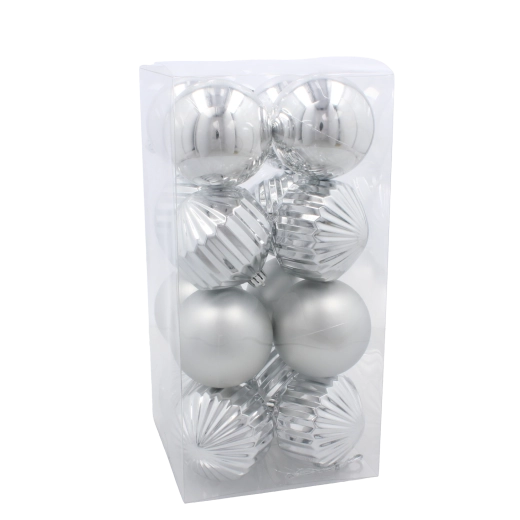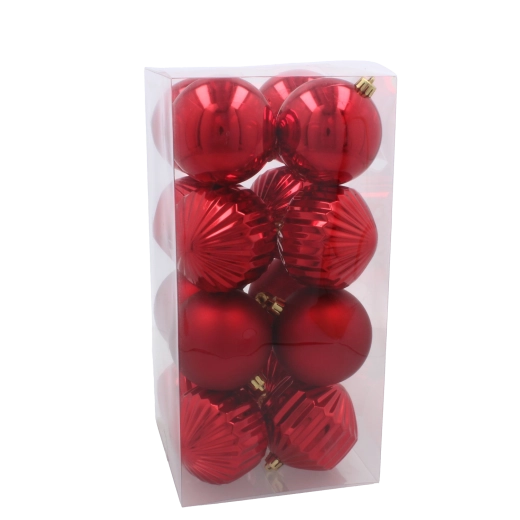 Dette elegante sæt juleornamenter forener harmonien af traditionelle farver og forskellige teksturer. Hver kugle har en diameter på 8 cm, så den træder flot frem på træet og belaster ikke grenene takket være det lette materiale. Overflader i blank, mat og glitrende finish giver dekorationerne dybde og flair.