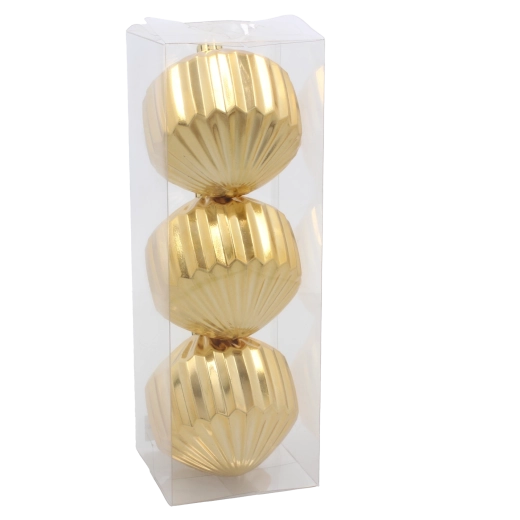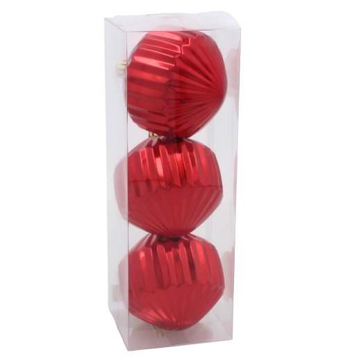 Løft din juleudsmykning med den tidløse kombination af rød, guld og sølv. Den blanke riflede overflade reflekterer lyset smukt og skaber en funklende effekt på træ, guirlande og krans. Takket være den lette og holdbare plastkonstruktion placeres kuglerne nemt uden at belaste grenene.