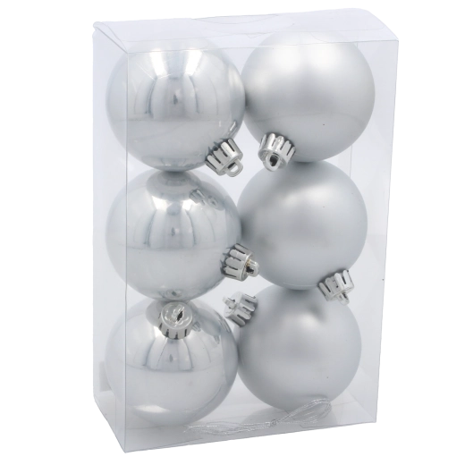 Giv dit hjem en magisk juleatmosfære med et sæt på seks julekugler med en diameter på 6 cm i de klassiske farver rød, gylden og sølv. Pynten er af brudsikkert materiale, så den er holdbar, sikker og ideel til hjem med børn og kæledyr. I pakken medfølger gyldne eller sølvfarvede snore til nem ophængning samt en kombination af blanke og matte overflader for et elegant, traditionelt udtryk på træet.