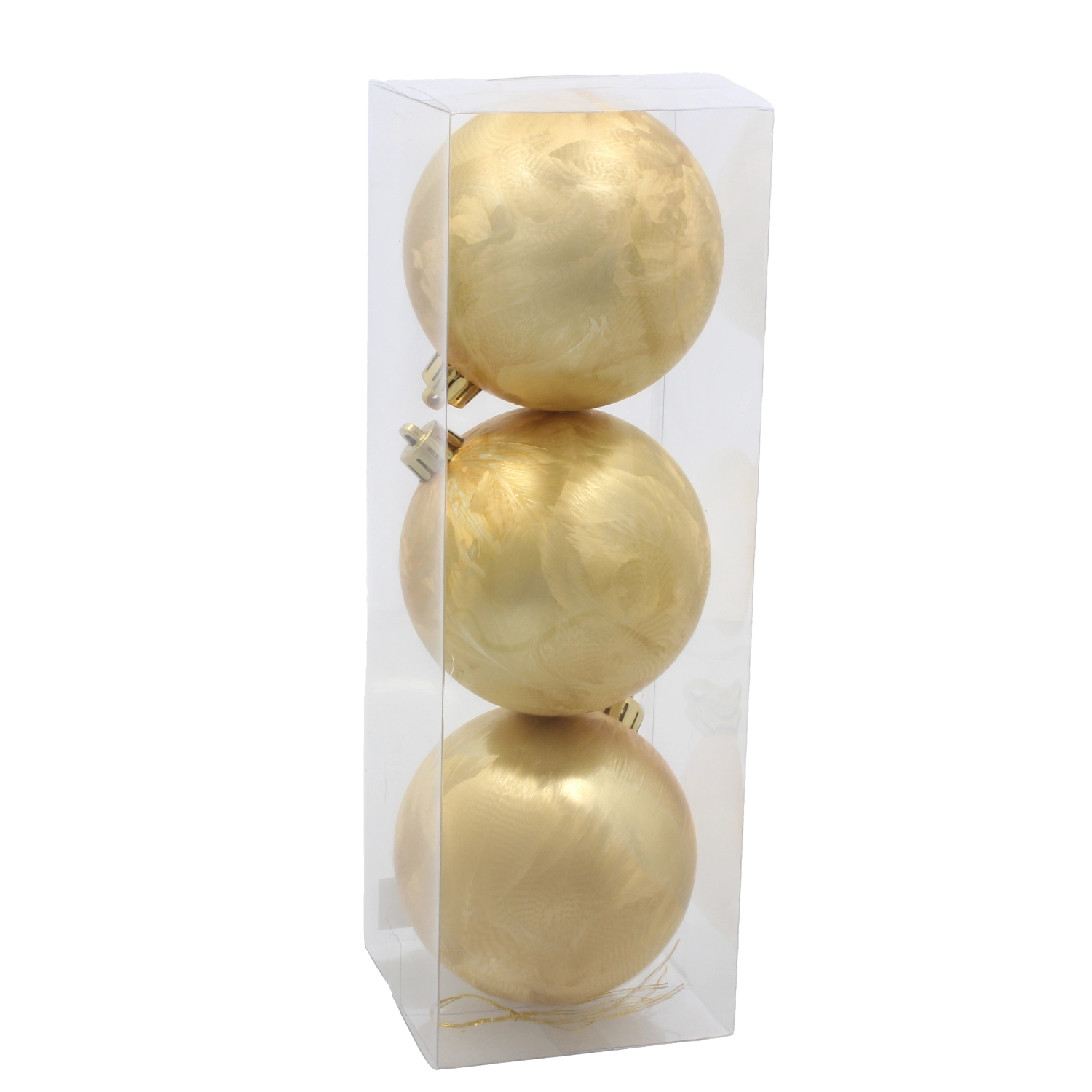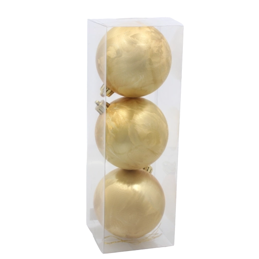 Hver kugle er udstyret med et stærkt gyldent ophæng til hurtig ophængning på grene eller kroge. Pakken med 3 stk. er perfekt som et supplerende sæt til din nuværende udsmykning eller som grundlag for en ny dekoration.