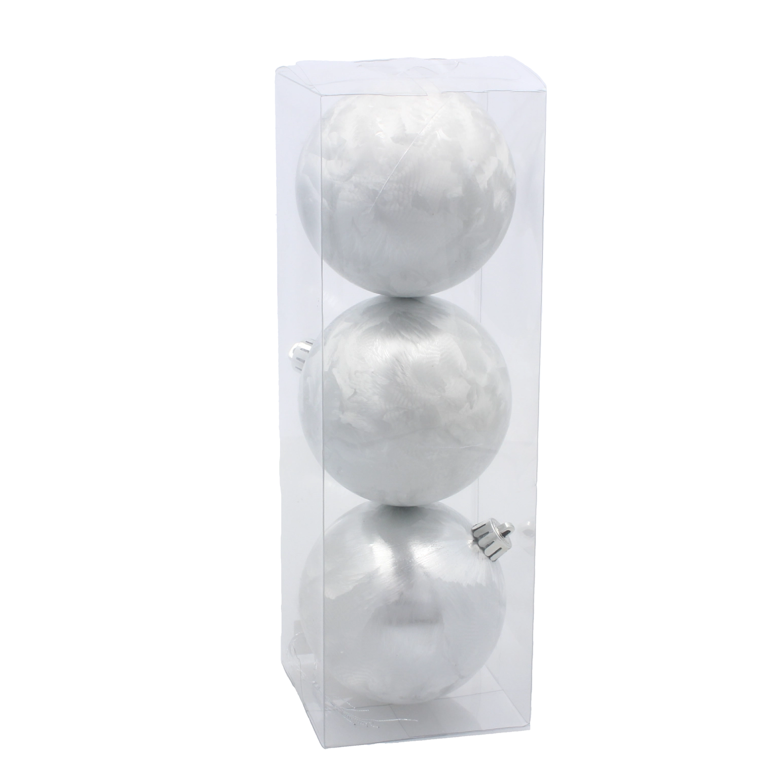 Hver kugle har et solidt ophæng, som gør det hurtigt og sikkert at placere den på en gren eller en dekorativ krog.