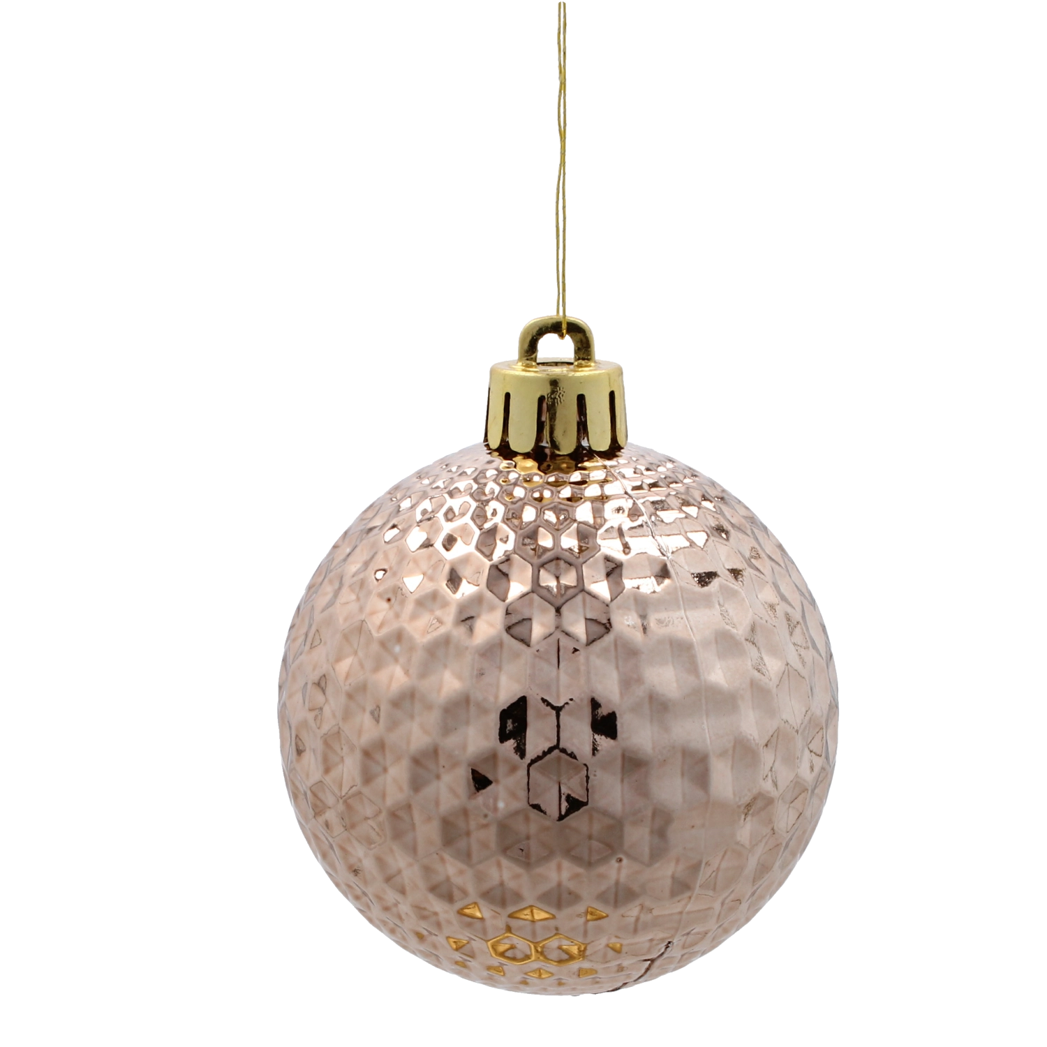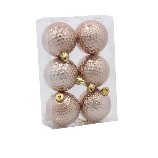 Dette stilfulde sæt julepynt tilbyder en harmonisk kombination af granatrød og beige-guld, som tilsammen skaber et tidløst og elegant udtryk. Kuglerne er lavet af plast i høj kvalitet, så de er modstandsdygtige over for brud og samtidig meget lette at hænge på grenene af ethvert træ.