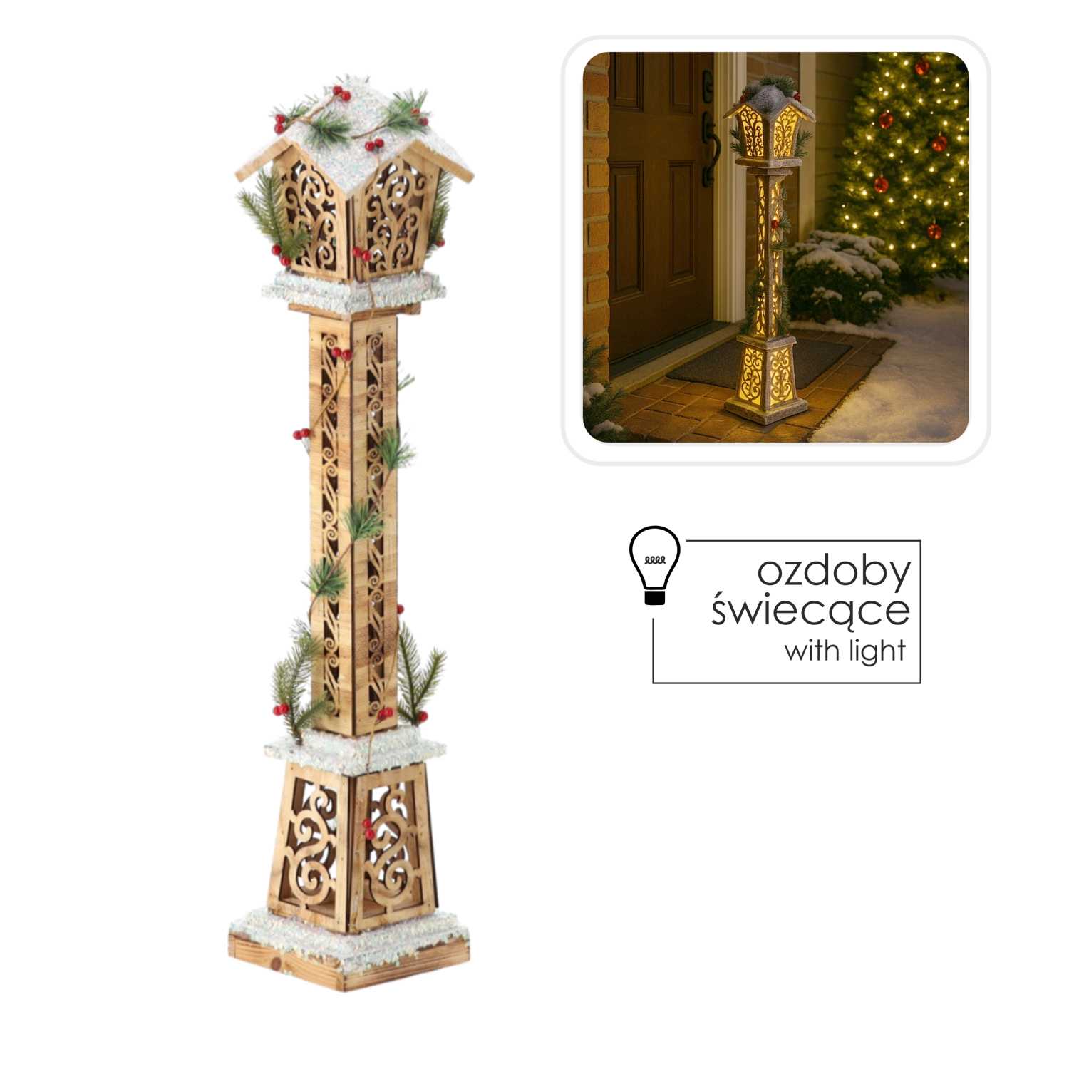 Denne stilfulde lanterne kombinerer naturligt træ, blidt varmt LED-lys og festlige detaljer, som straks giver dit rum ekstra charme. Perfekt til stuen, gangen og den overdækkede terrasse eller veranda.