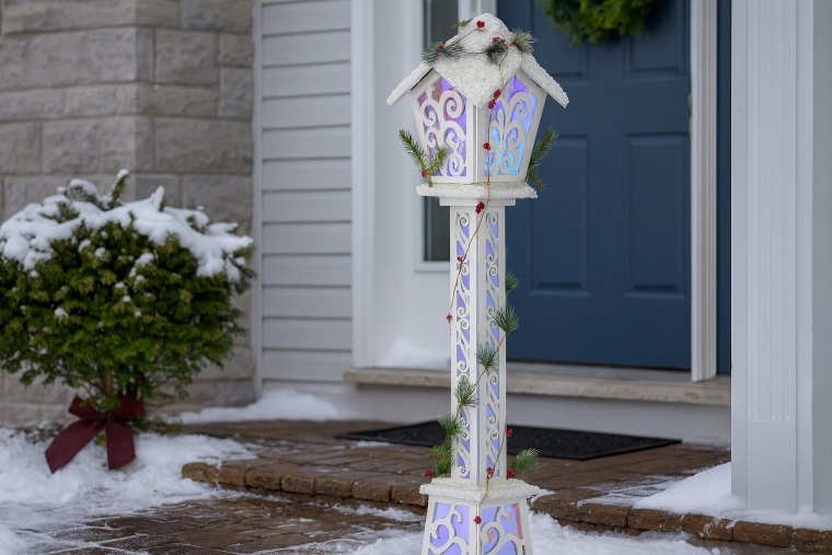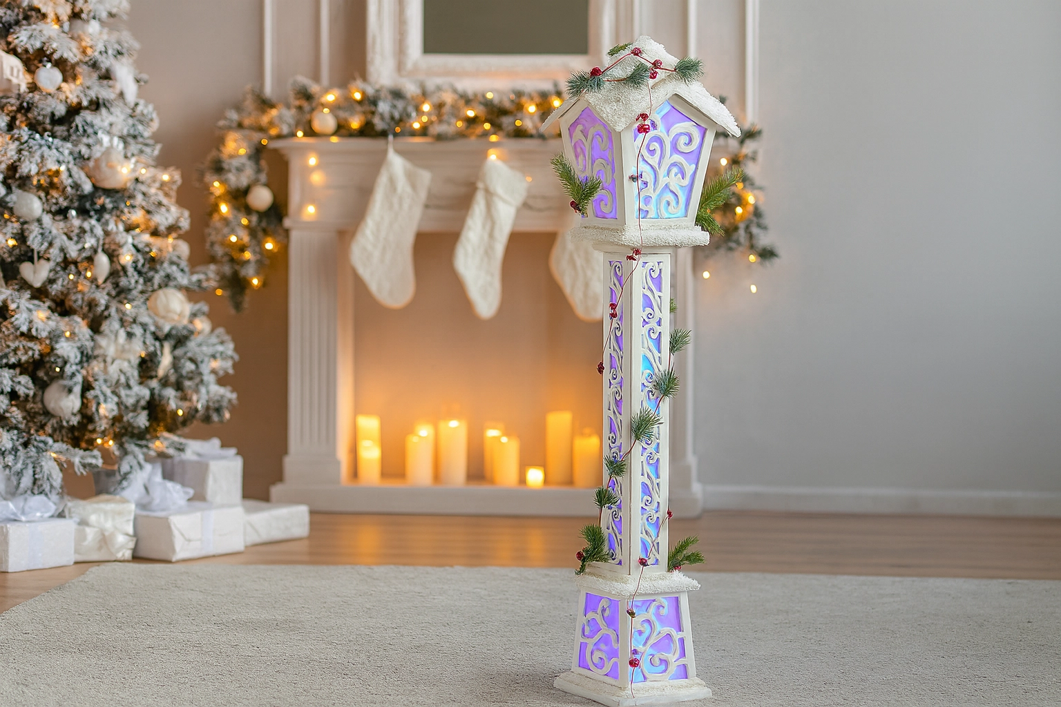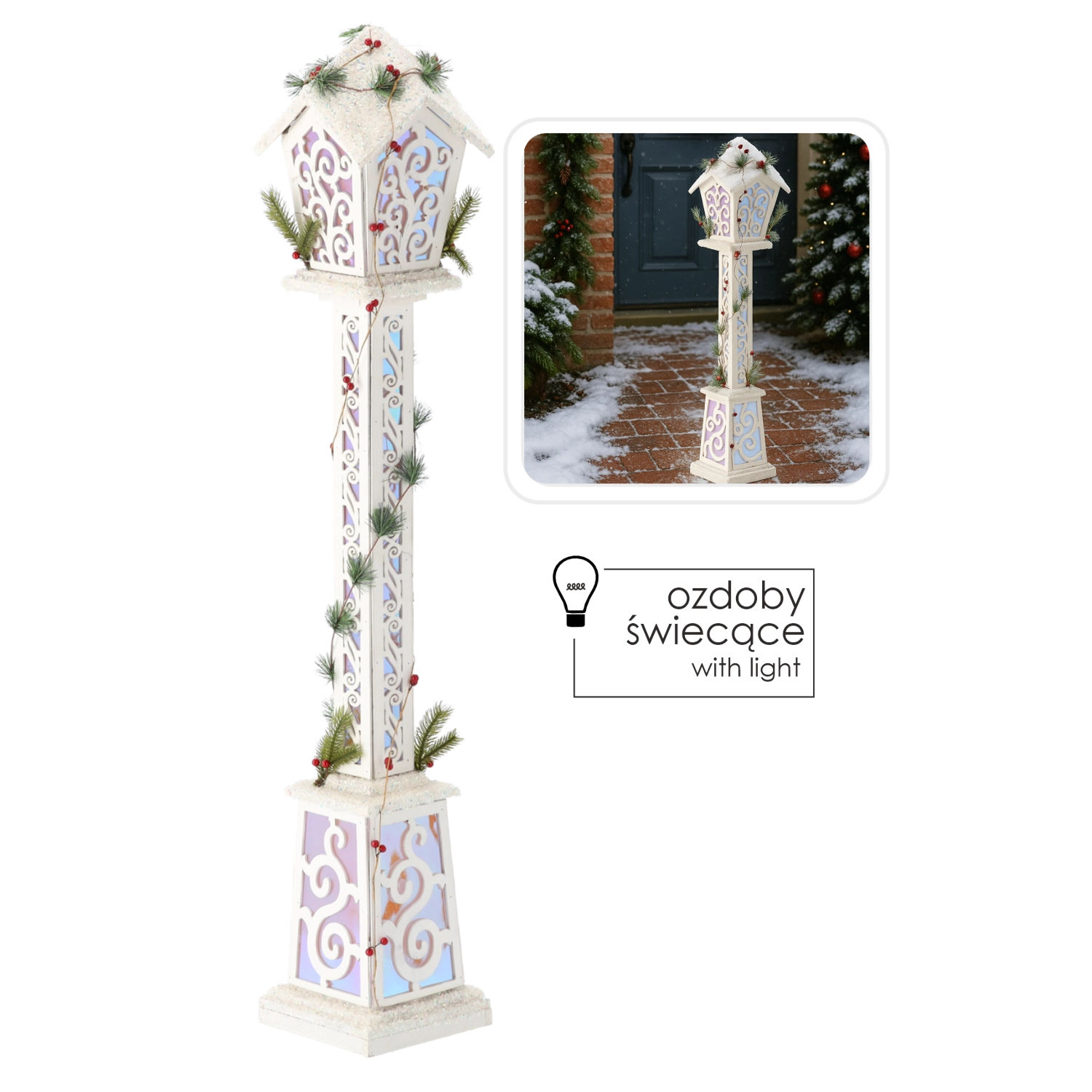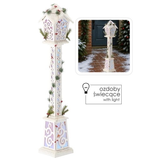Denne høje julelanterne imponerer med sit rene hvide design og subtilt oplyste ornamentpaneler, der skaber et stemningsfuldt lysspil, når den tændes. Takket være LED-teknologi lyser den energibesparende og sikkert, uden opvarmning og med lang levetid.