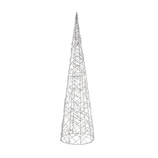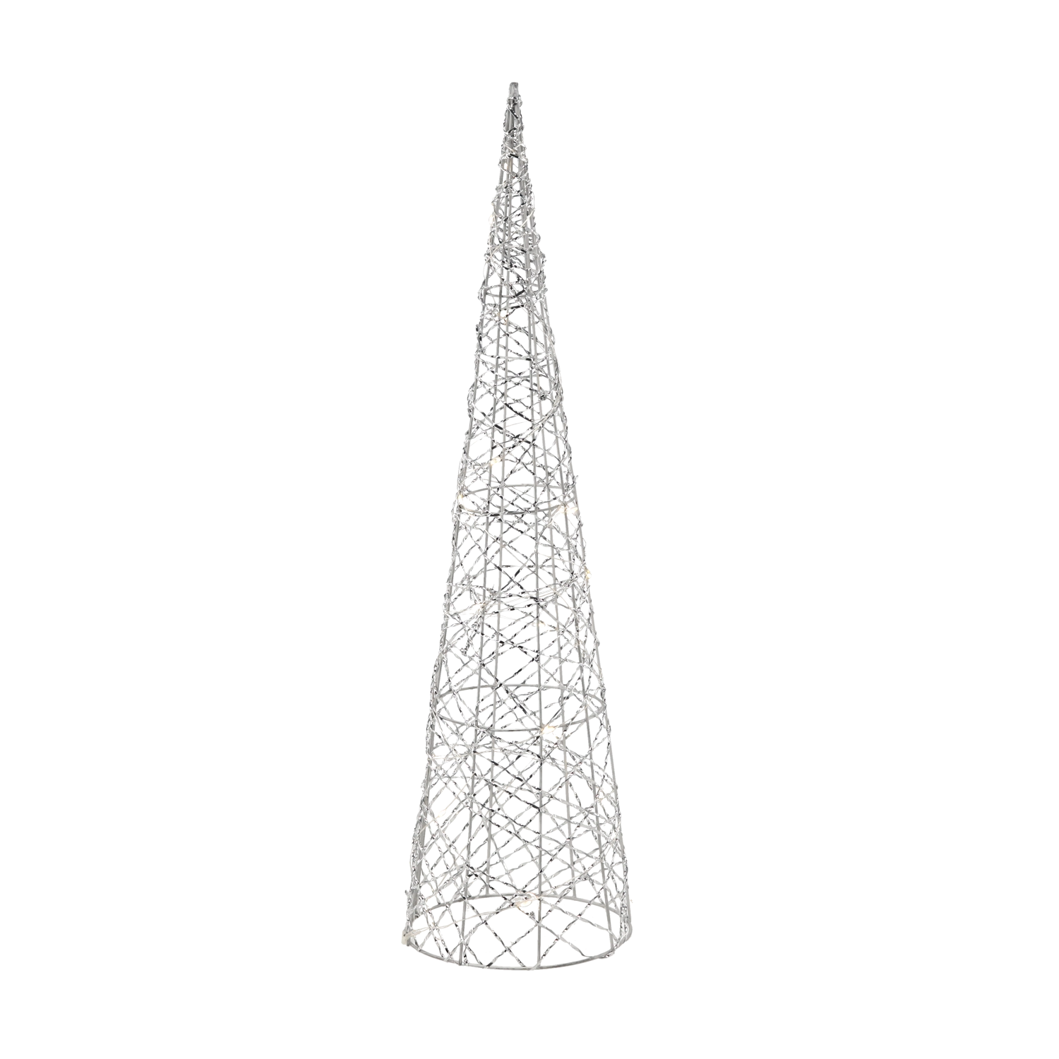 En stilfuld juledekoration i moderne sølv, perfekt til bord, hylde eller vindueskarm. Den kegleformede silhuet og det blide, varme lys fra 30 LED-dioder understreger den festlige stemning i enhver indretning. Takket være batteridrift er du ikke afhængig af en stikkontakt, og træet kan nemt flyttes efter behov.