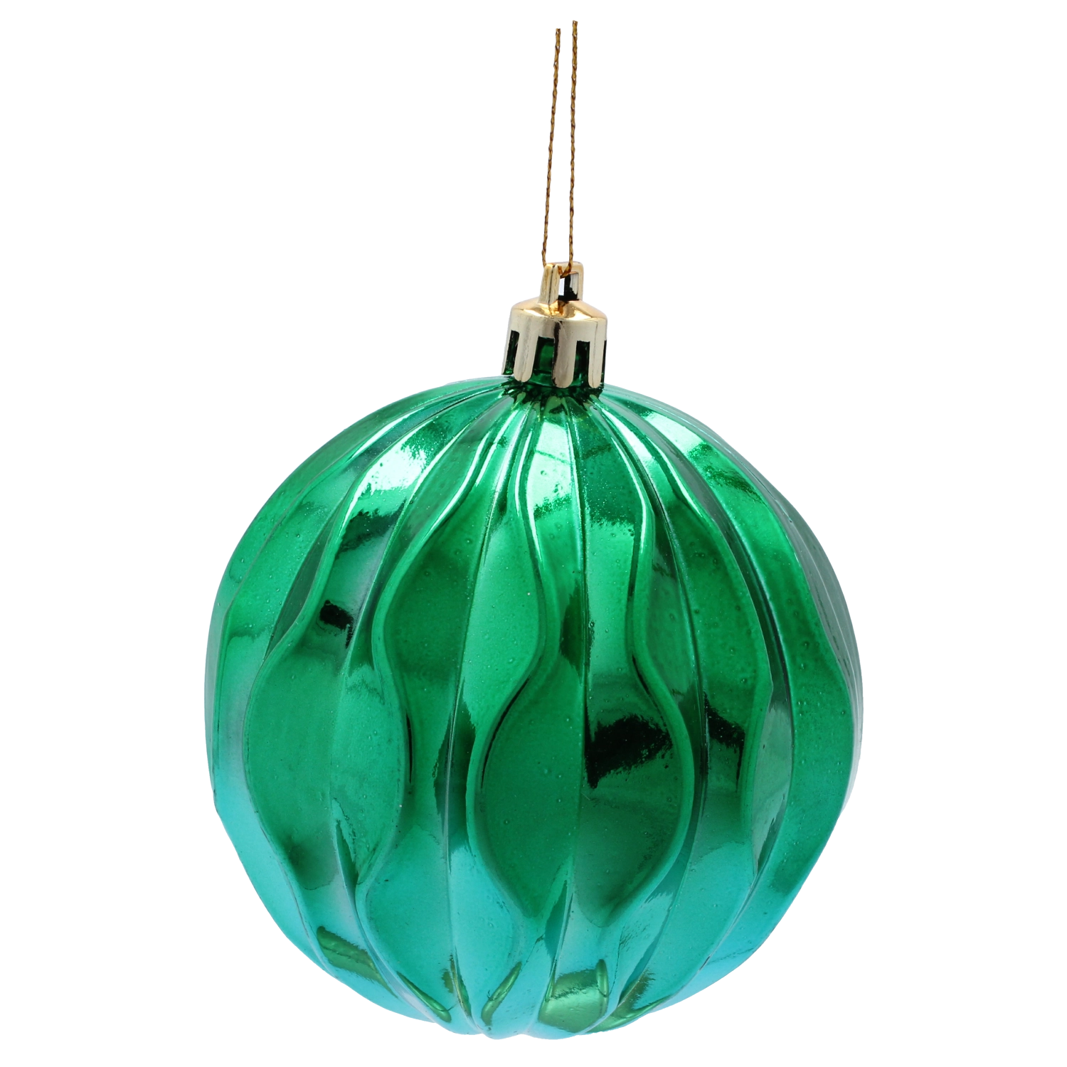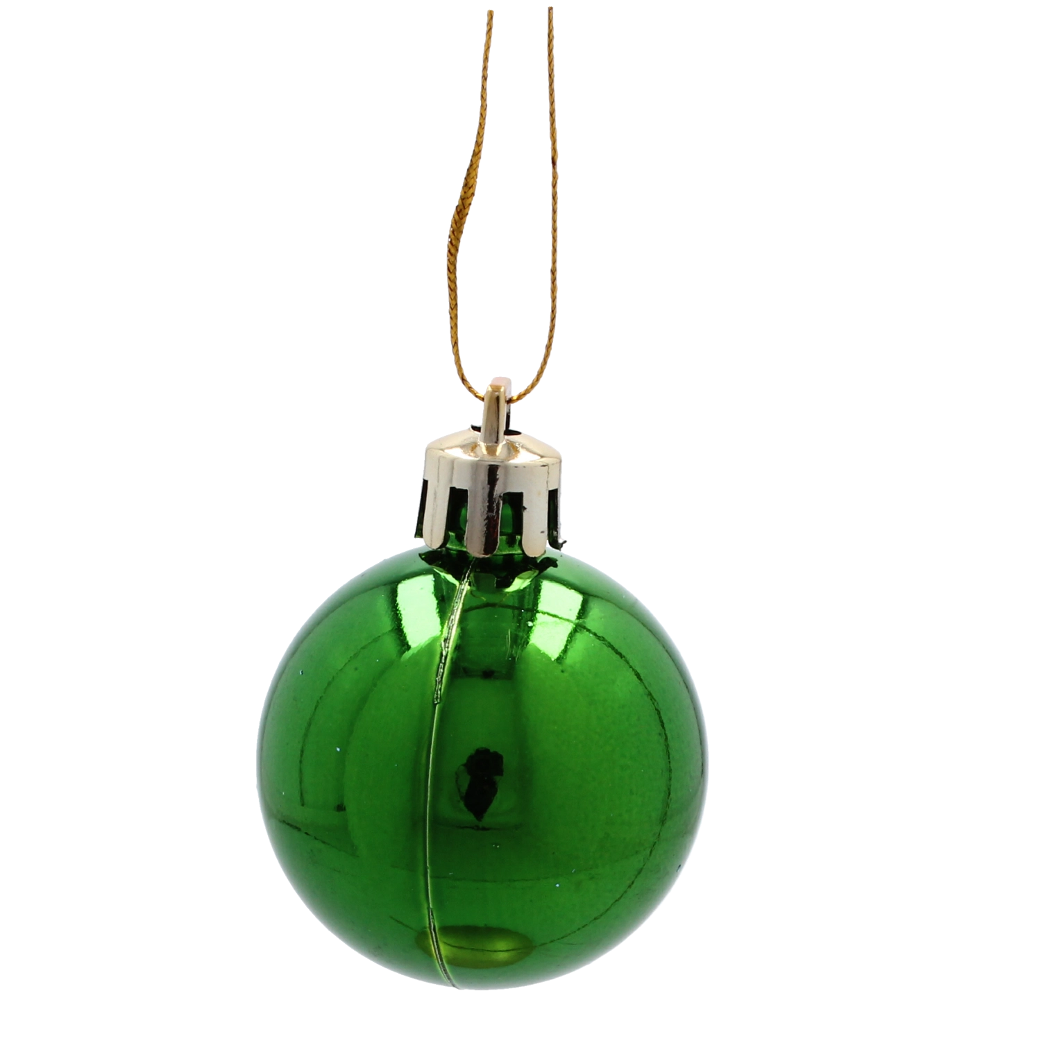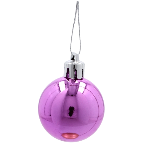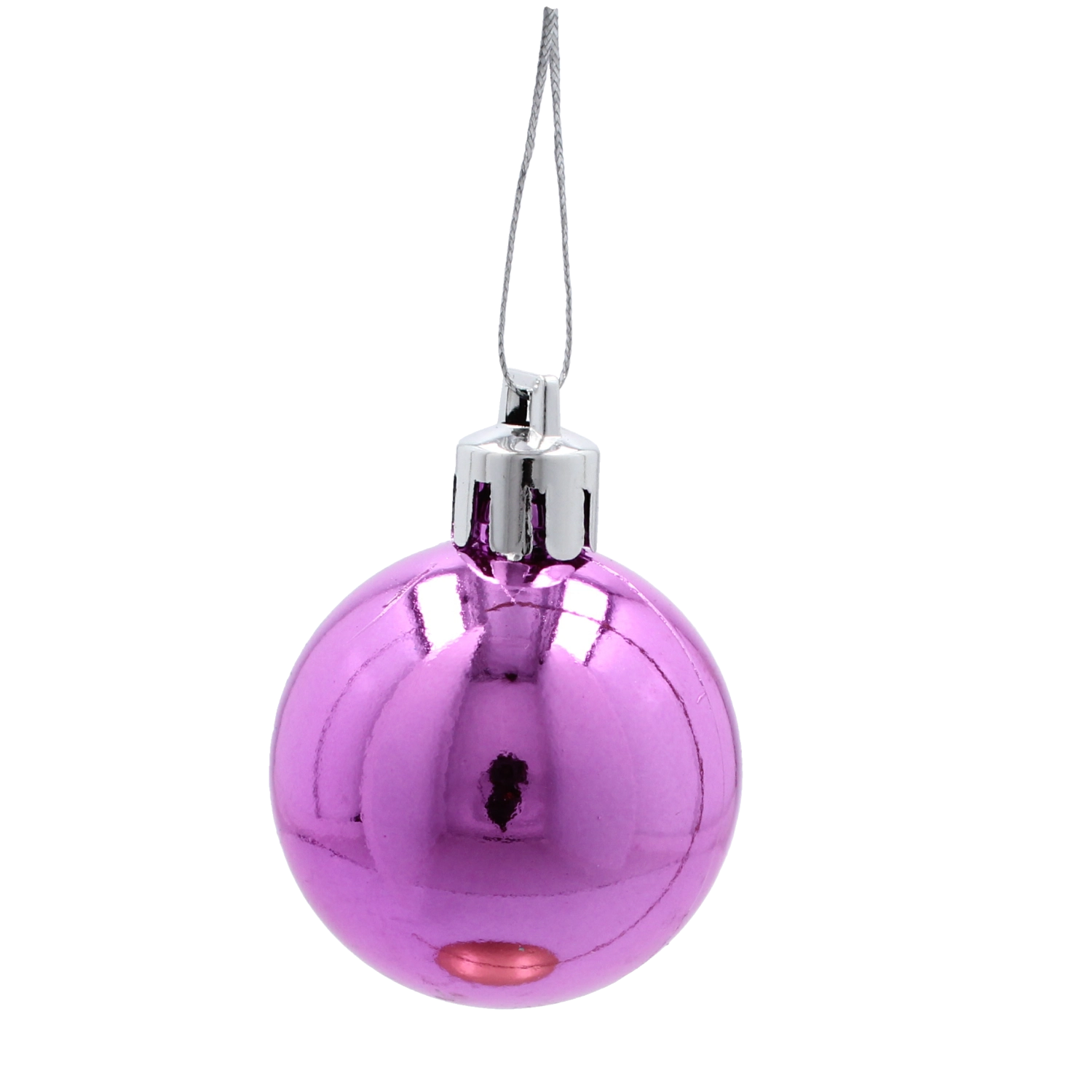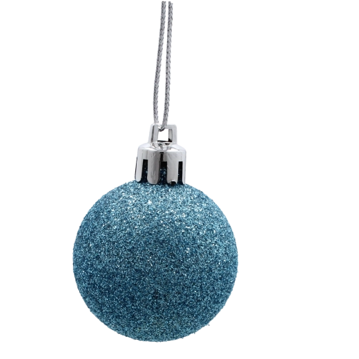Seksten mindre kugler (4 cm) og seks større (8 cm) hjælper med at skabe dybde og rytme i udsmykningen. Kombinationen af mat, blank og glitter giver dekorationen dynamik.