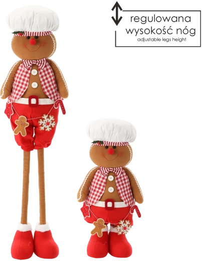 En sød juledekoration i form af en peberkagedreng med teleskopben, som bringer julens magi ind i dit hjem. Takket være den justerbare højde kan den nemt tilpasses forskellige rum, mens den stabile konstruktion og kvalitetsmaterialer sikrer lang levetid og et smukt udtryk ved træet, på pejsen eller på det festlige bord.