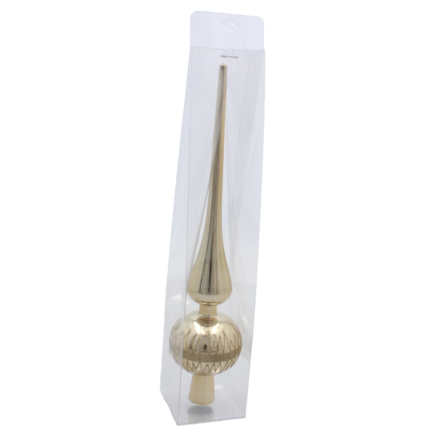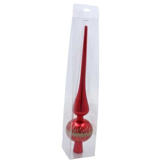 Skab en festlig atmosfære med en stilfuld top i kvalitetsglas, der kroner ethvert juletræ. Den skinnende overflade reflekterer lyset smukt og giver dekorationen gnist og elegance. Takket være det omhyggelige håndværk er toppen holdbar og klar til at sprede glæde i mange sæsoner.