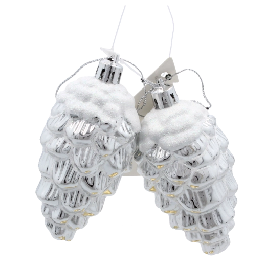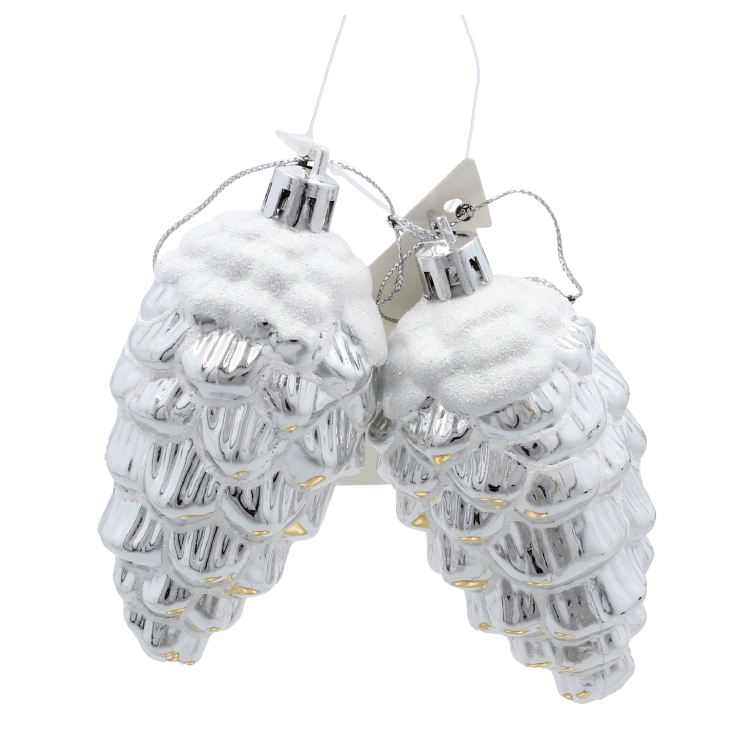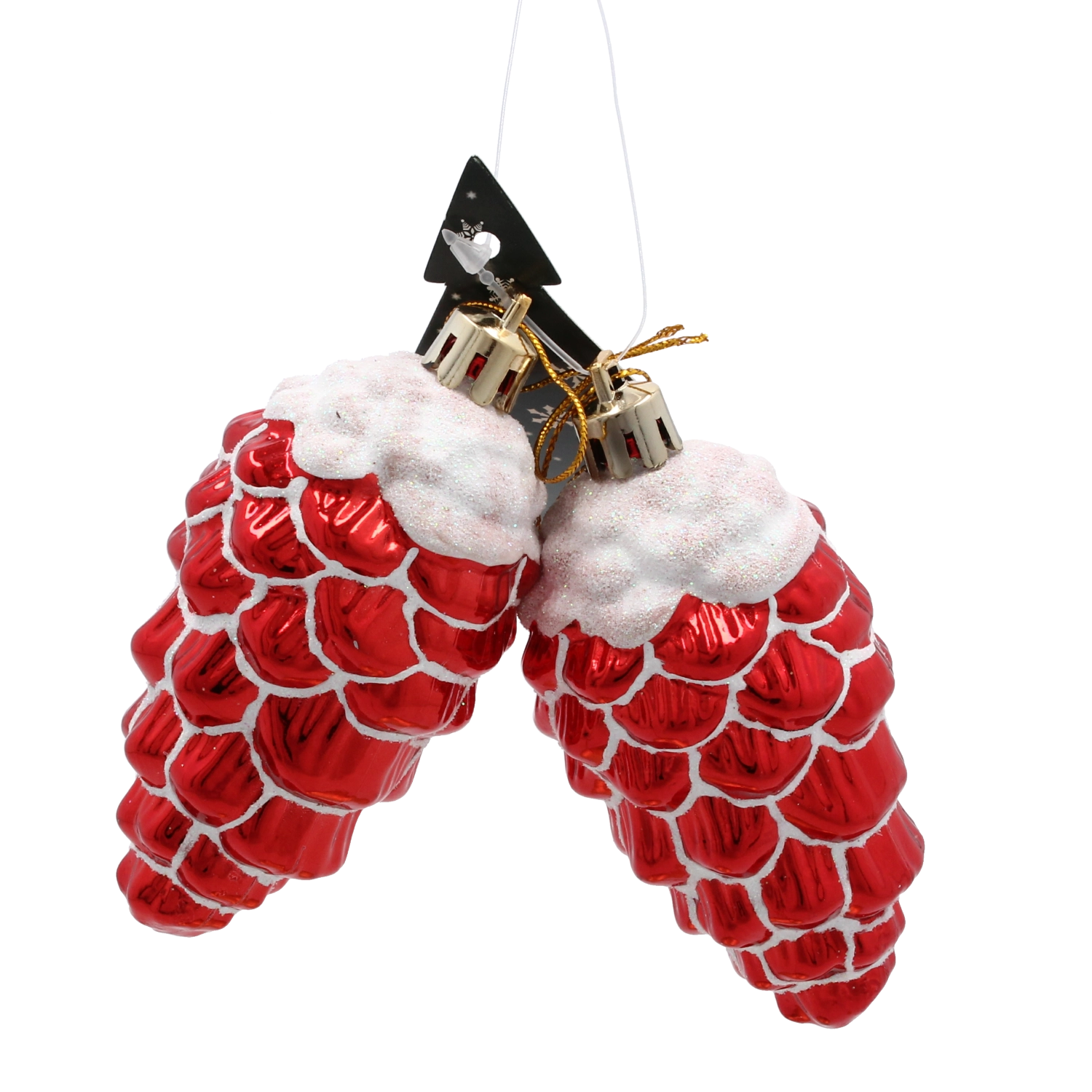 Hver kogle har en højde på 9 cm og er udstyret med en sølvfarvet snor for hurtig og sikker ophængning. I pakken finder du to ornamenter i populære julefarver – guld, sølv og rød – som nemt kan kombineres med anden udsmykning.