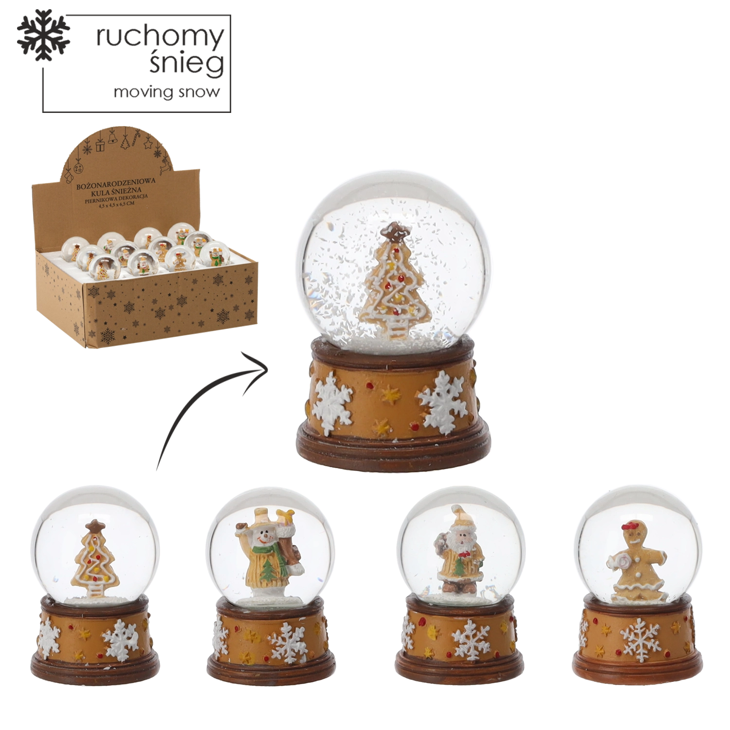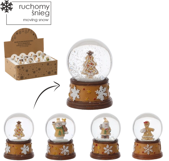 Denne magiske juledekoration i form af en snekugle bringer en varm og hyggelig højtidstemning ind i hjemmet. Hver kugle rummer en detaljeret figur, og når du ryster den, skabes effekten af let snefald. Takket være det alsidige design passer den både på børneværelset og i et elegant interiør.