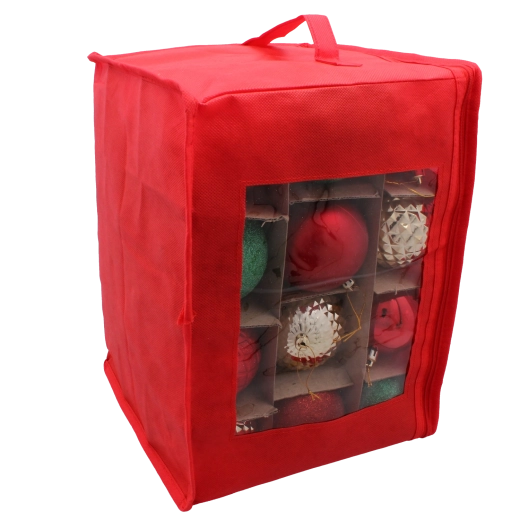 Kombinationen af blanke, matte og glitrende overflader i klassiske festlige farver skaber et harmonisk og samtidig effektfuldt udtryk. Hver kugle har en gylden eller sølvfarvet snor til hurtig og sikker ophængning på grene, kroge eller i dekorationer.