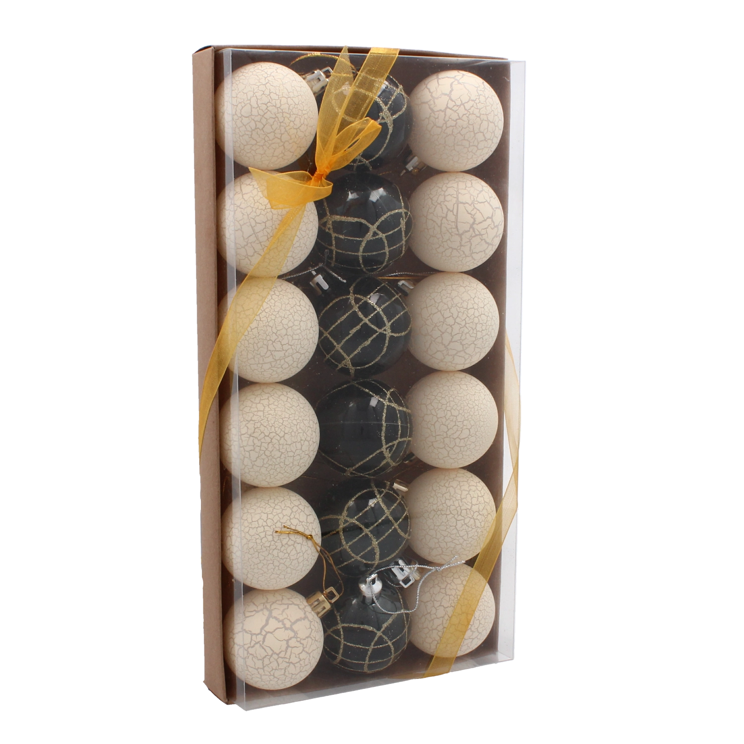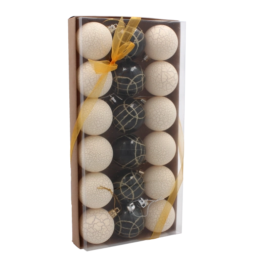 Denne kollektion af julekugler i ensartet størrelse 5 cm tilbyder stilfuld og holdbar pynt til ethvert juletræ. Hver kugle er omhyggeligt fremstillet for lang levetid og gentagen brug gennem mange sæsoner.