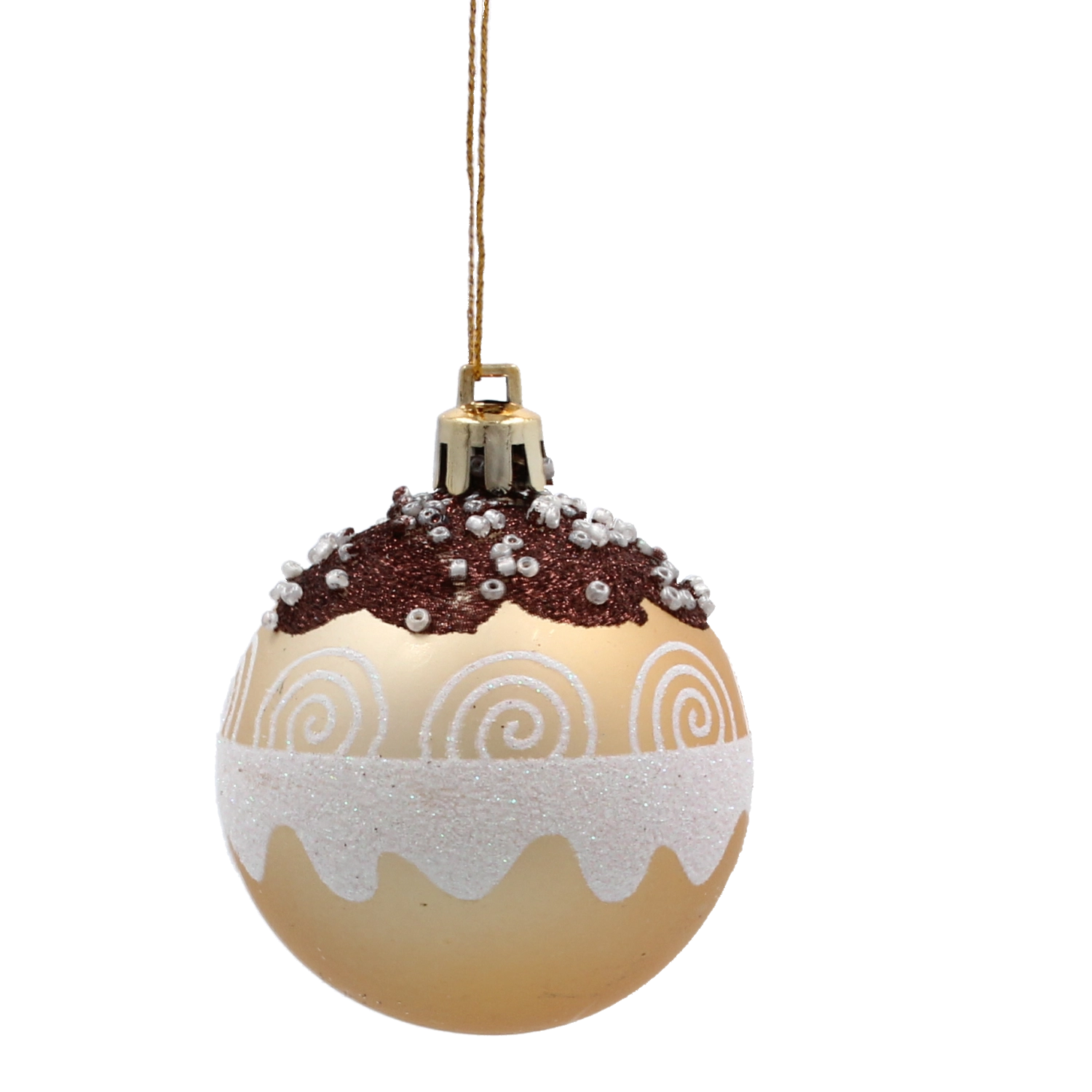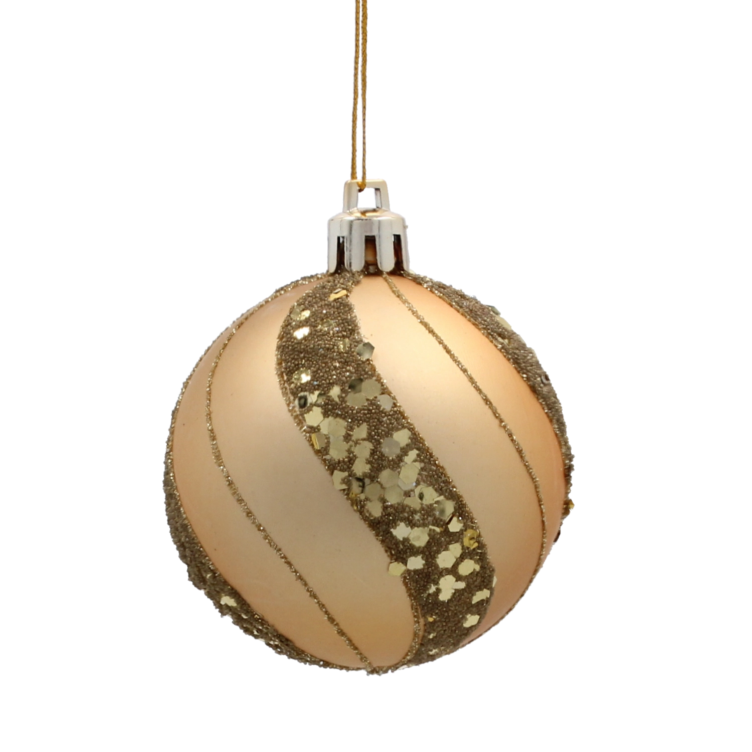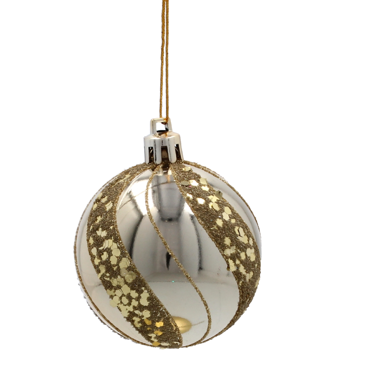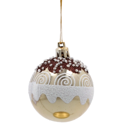 Giv dit juletræ et elegant udtryk med et sæt gyldne kugler med en diameter på 6 cm. Sættet indeholder 8 stk. i forskellige mønstre for en harmonisk udsmykning, fremstillet af splintfri plast for sikkerhed og holdbarhed. Hver kugle har en snor til nem ophængning, så pyntningen er hurtig og bekvem.