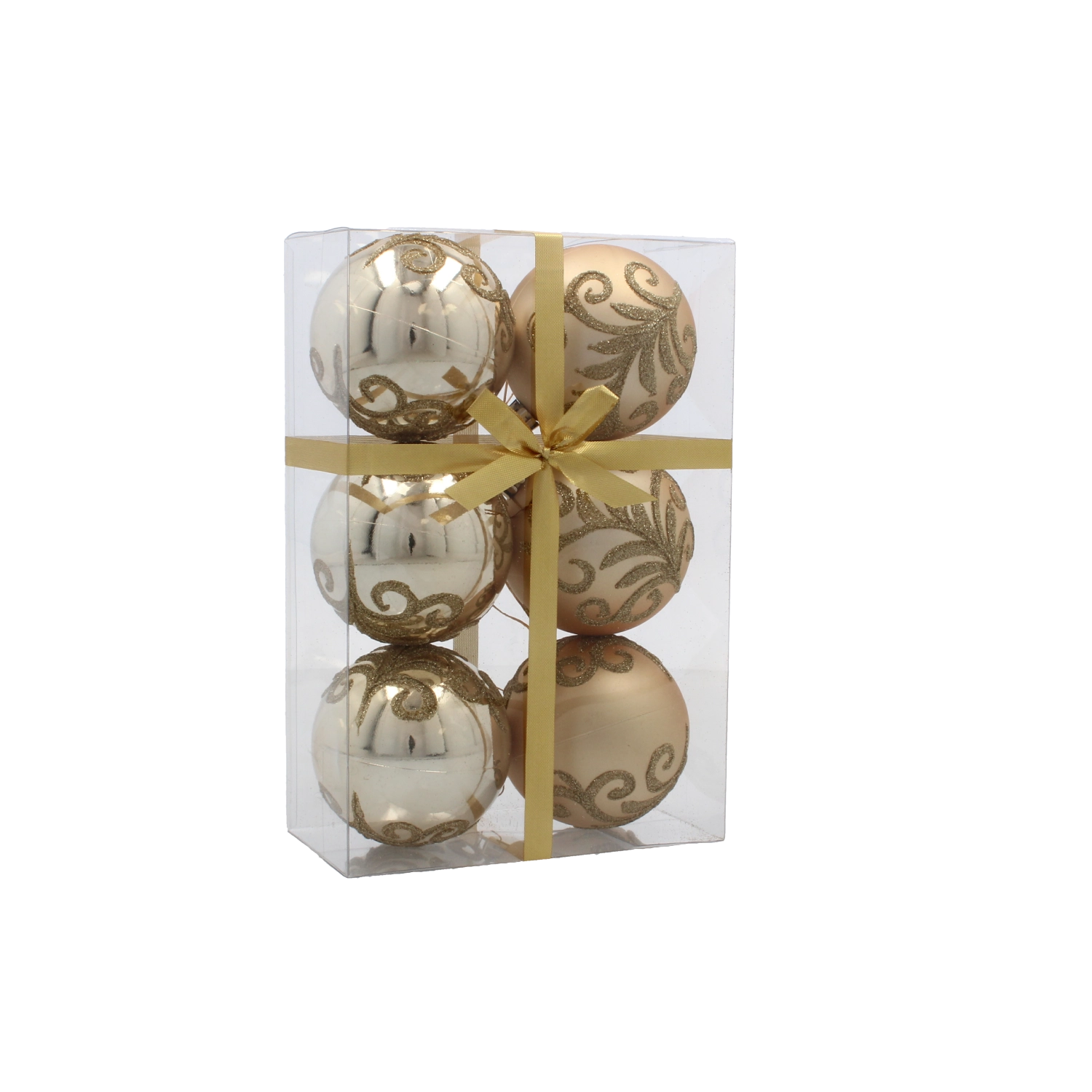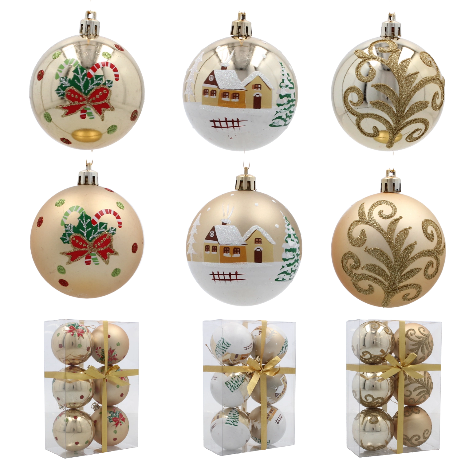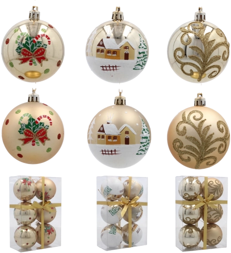 Opgrader din juleudsmykning med et stilfuldt sæt gyldne kugler, der med deres varierende mønstre og overflader virker luksuriøse og samtidig alsidige. Den lette, brudsikre plastkonstruktion gør dem nemme at hænge op uden at belaste grenene og sikrer lang holdbarhed selv ved hyppig brug.