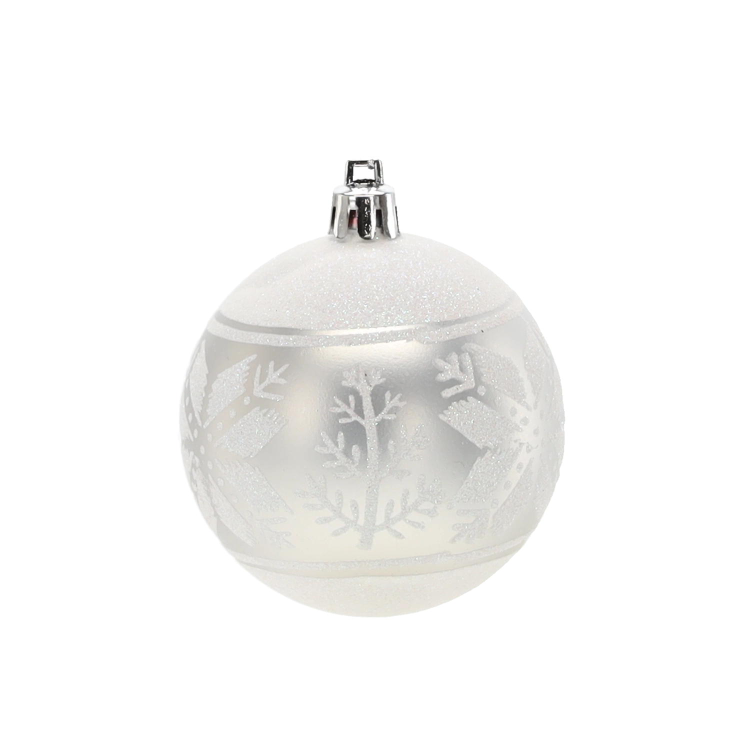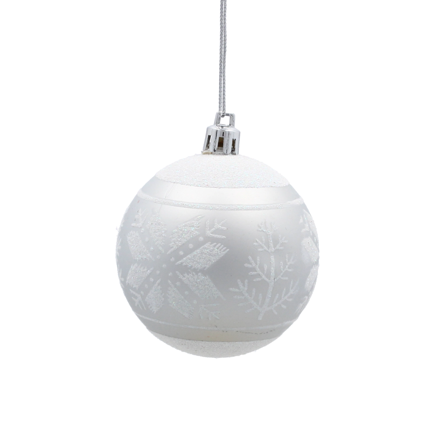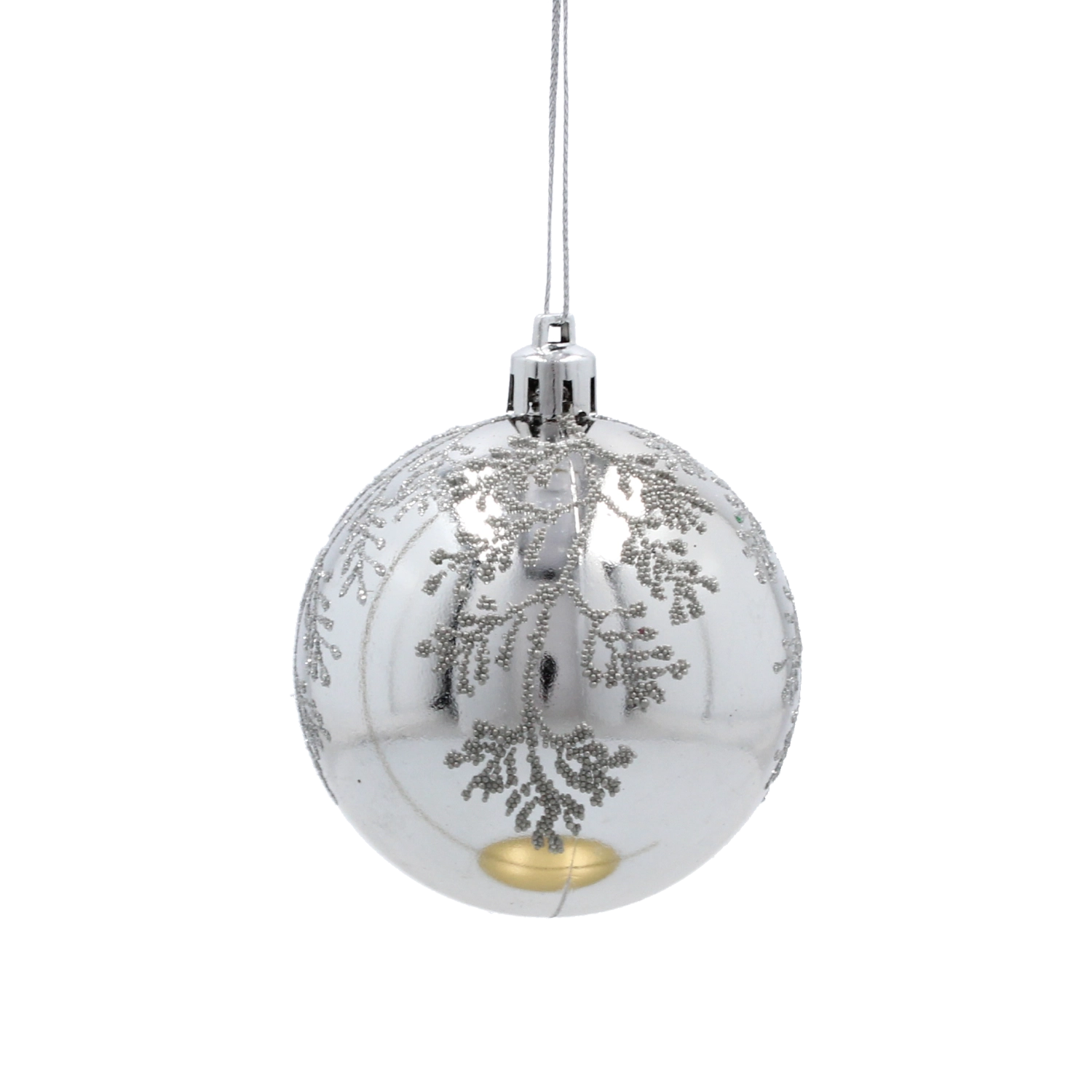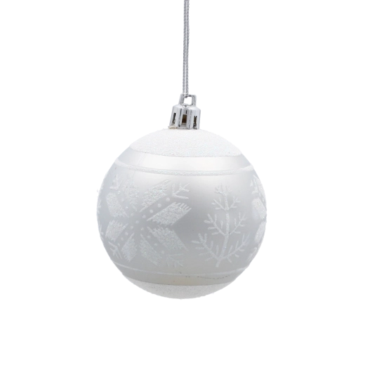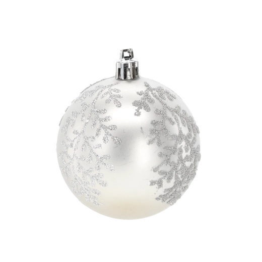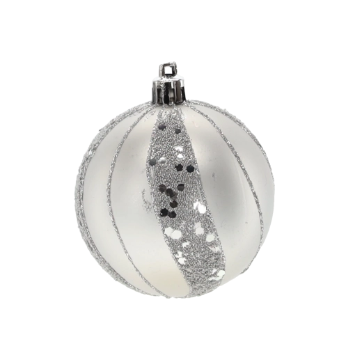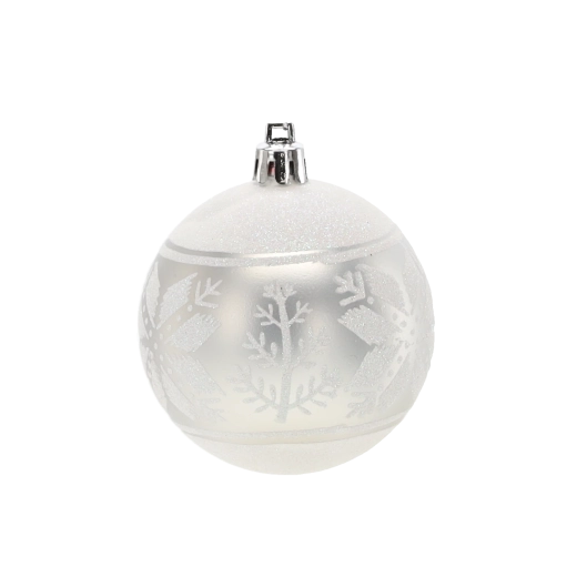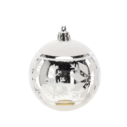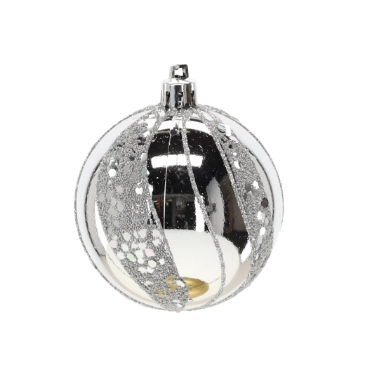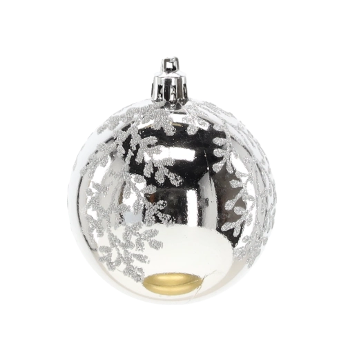 Et elegant sæt med seks sølvfarvede julekugler med en diameter på 7 cm, der giver din udsmykning glans og elegance. Kombinationen af matte og blanke overflader med glitrende detaljer skaber en magisk, festlig atmosfære. Det lette og holdbare plastmateriale er sikkert for børn og ideelt til nem ophængning på træer, kranse, guirlander og i borddekorationer.