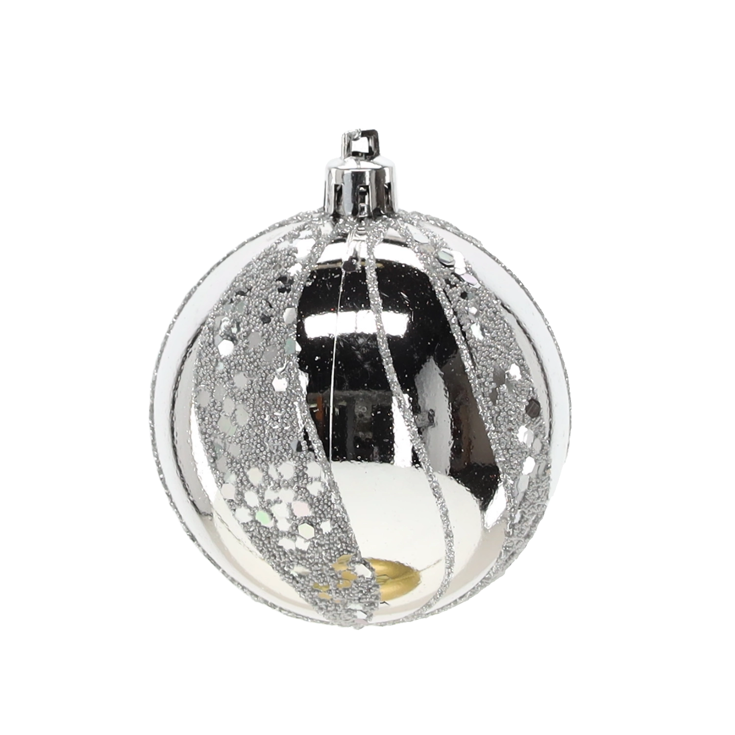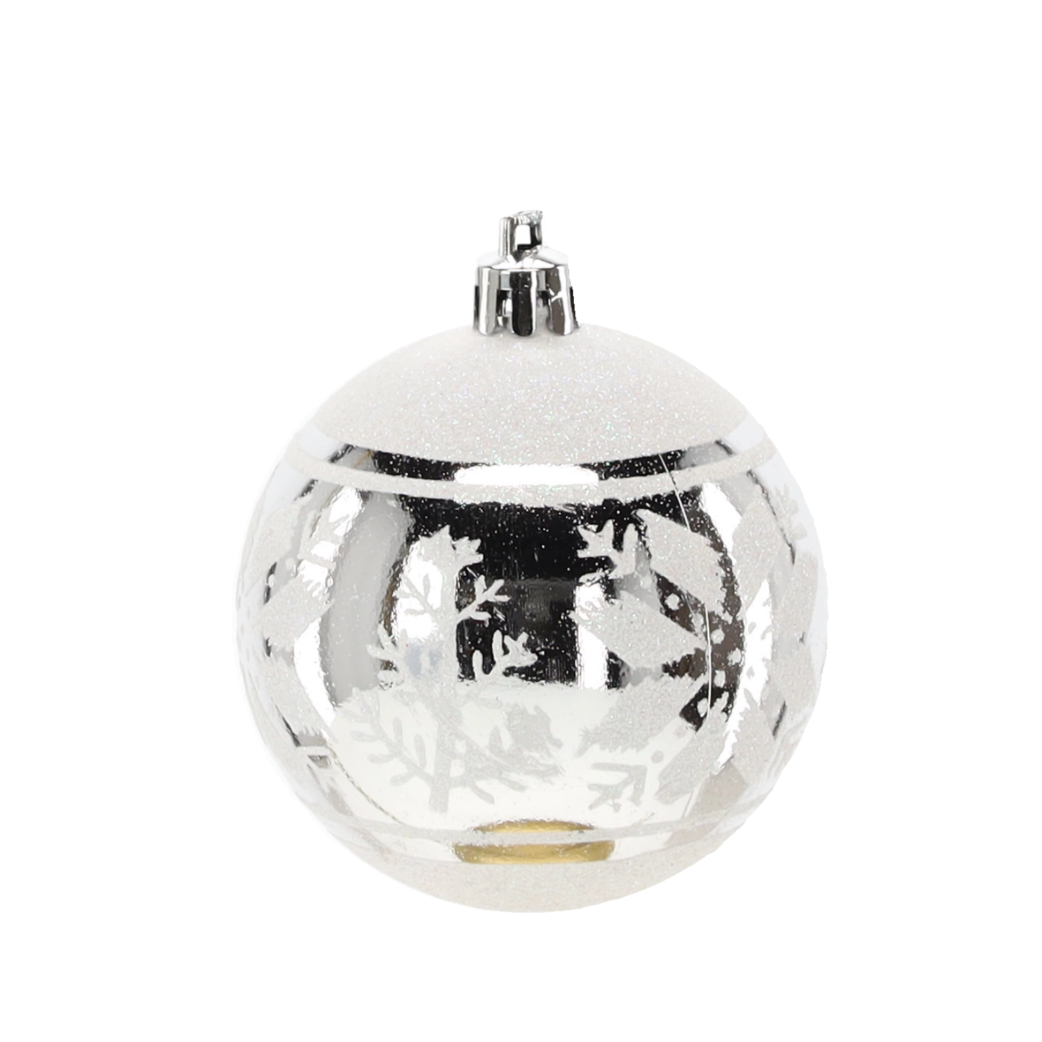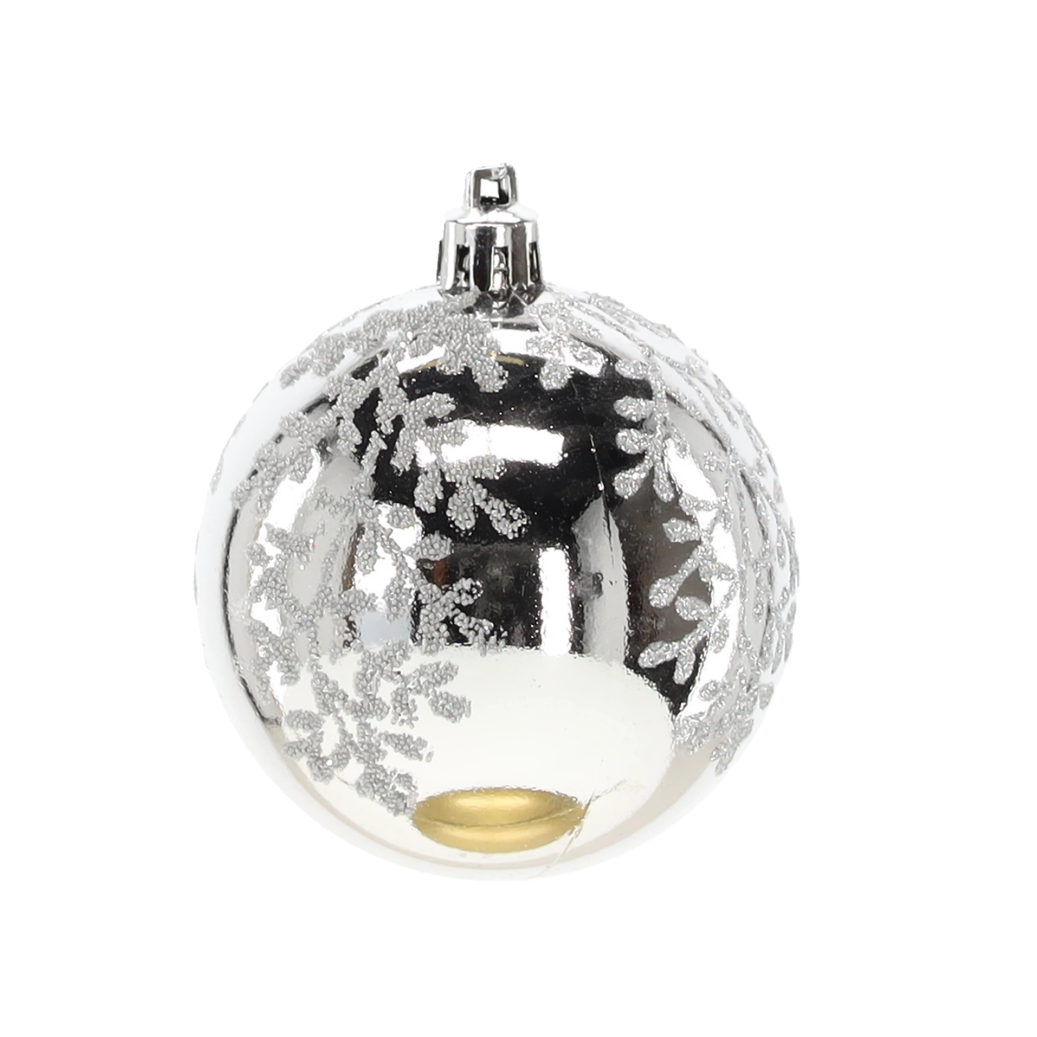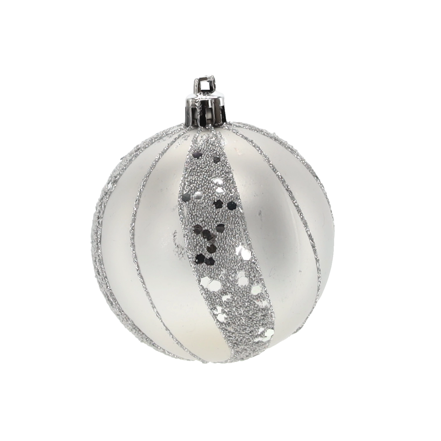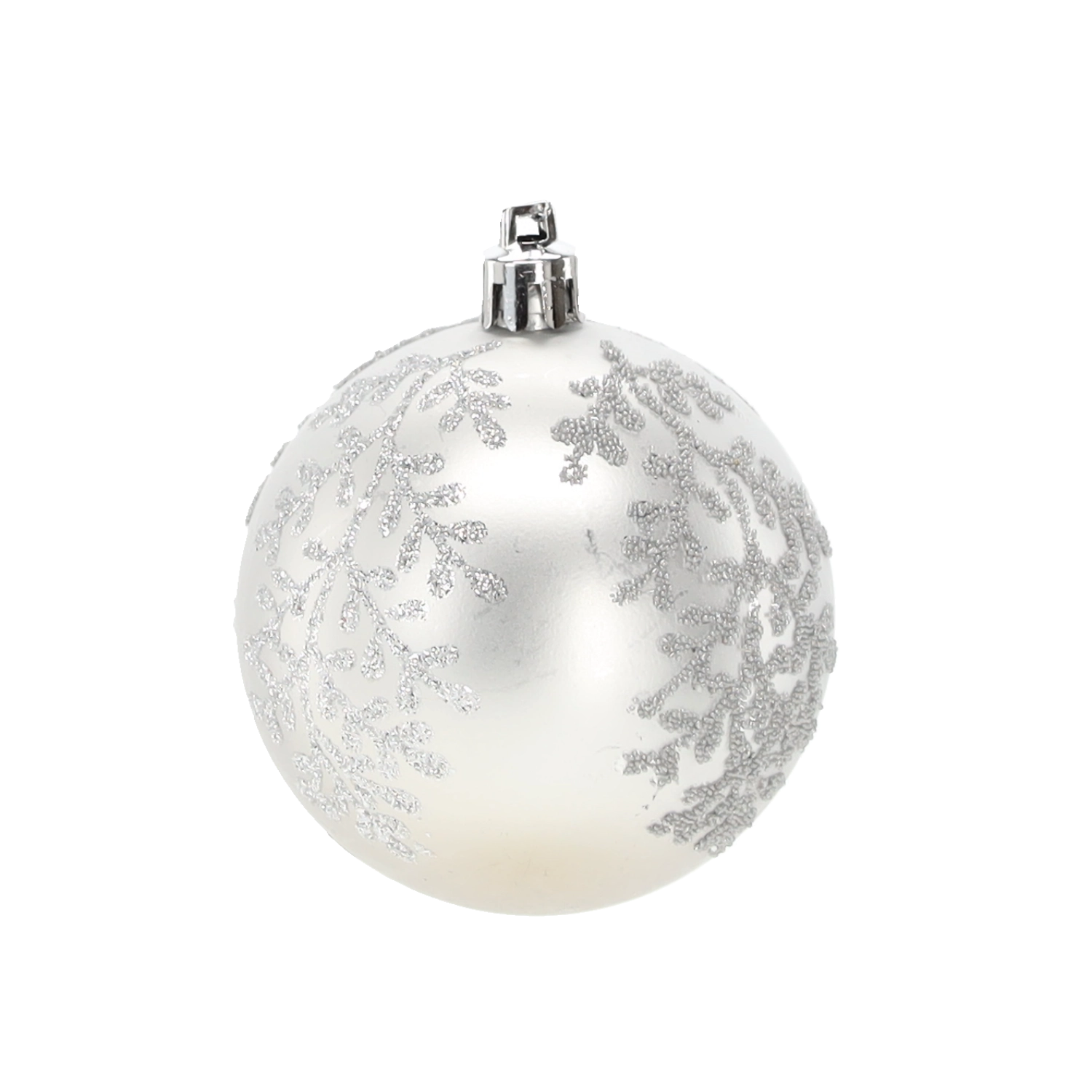 Et elegant sæt med seks sølvfarvede julekugler med en diameter på 7 cm, der giver din udsmykning glans og elegance. Kombinationen af matte og blanke overflader med glitrende detaljer skaber en magisk, festlig atmosfære. Det lette og holdbare plastmateriale er sikkert for børn og ideelt til nem ophængning på træer, kranse, guirlander og i borddekorationer.