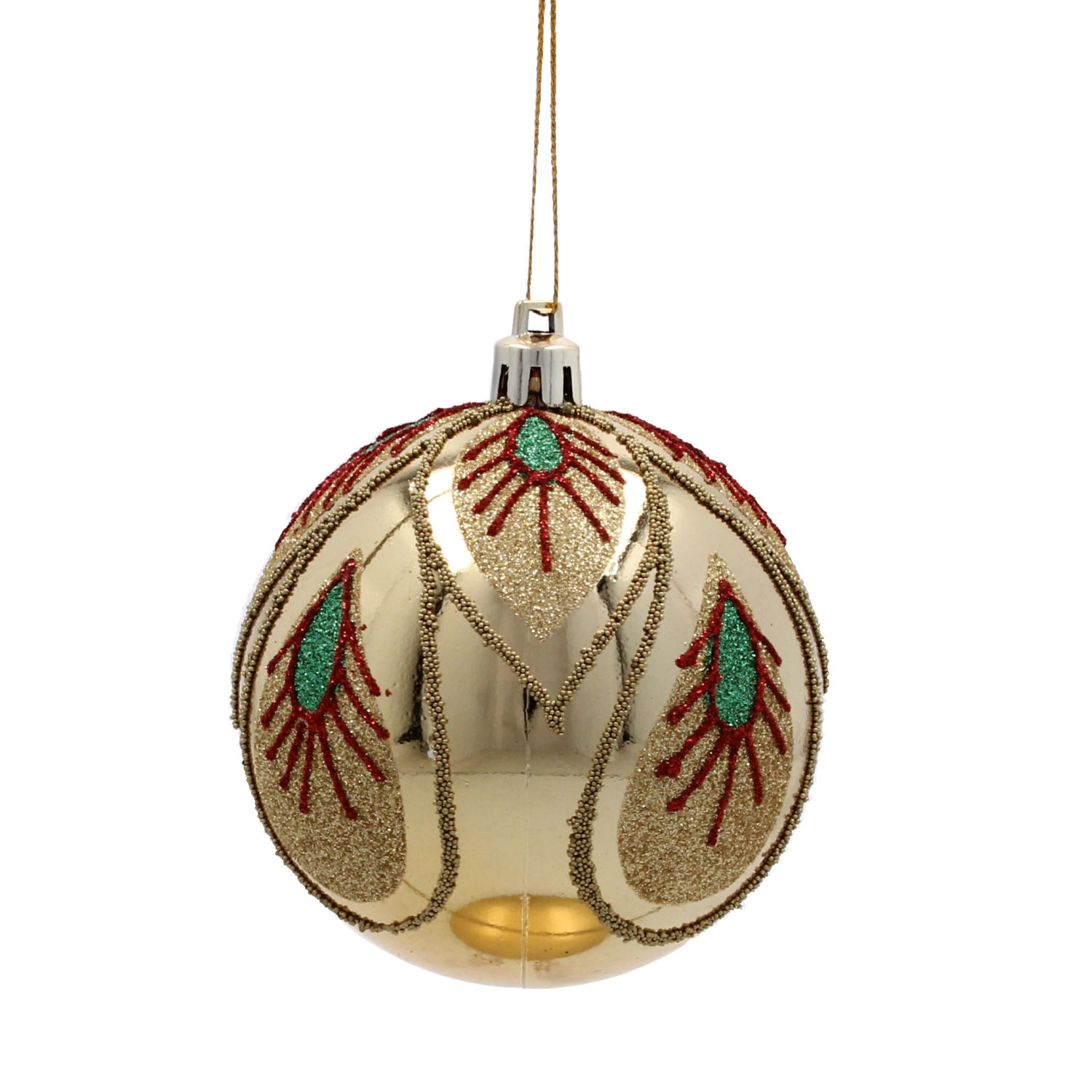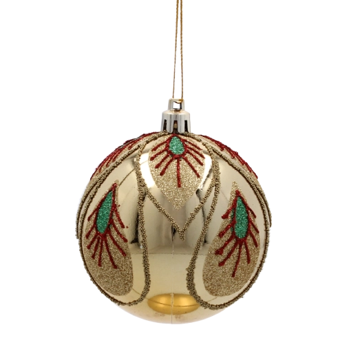 Spændende glittermønstre, inklusive det populære påfugleøje-motiv, giver pynten gnist og en unik karakter.