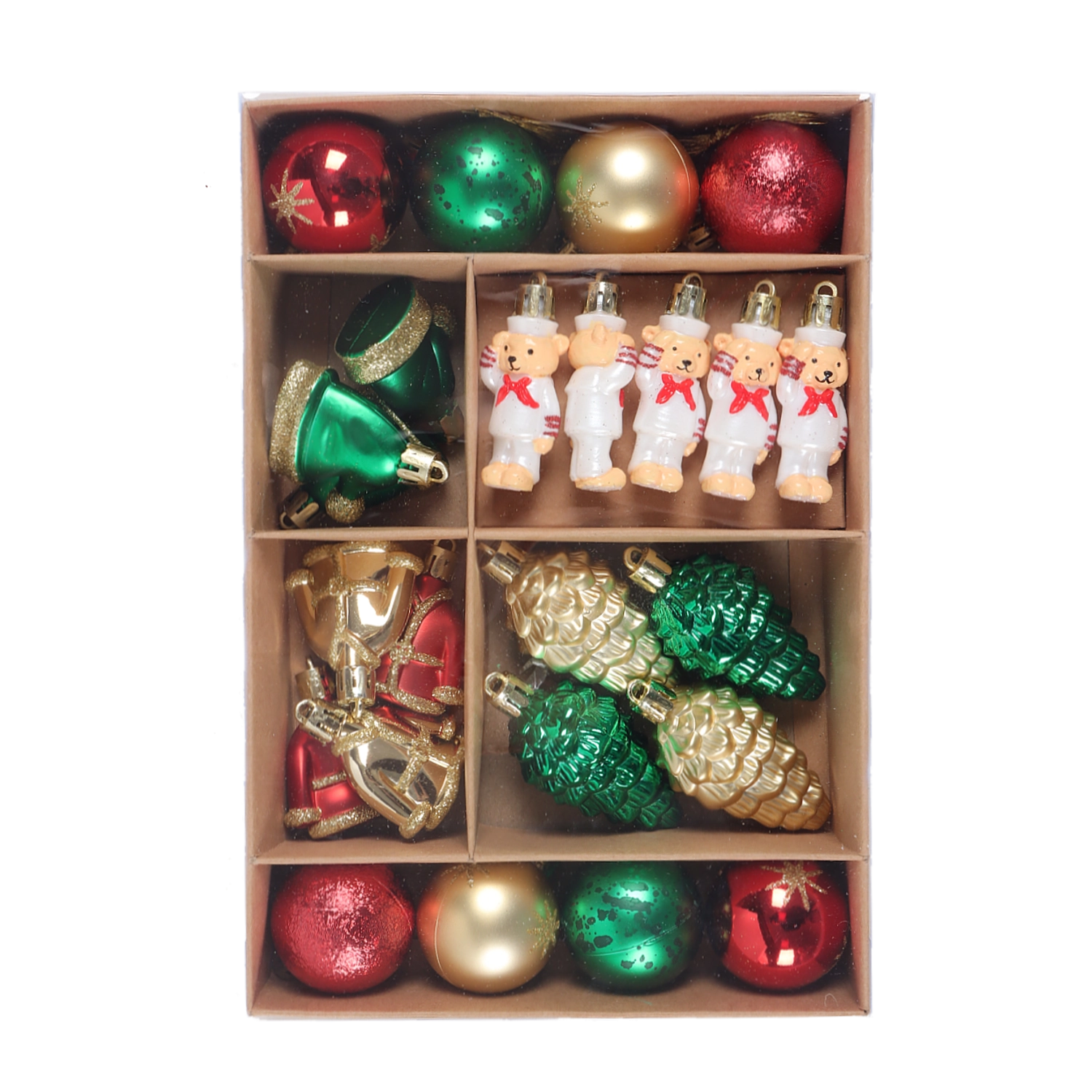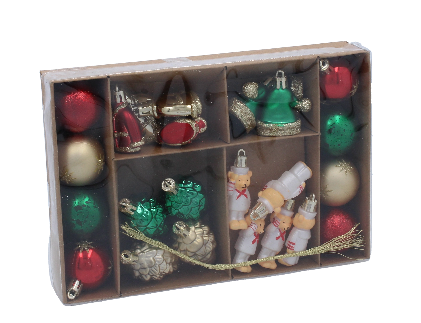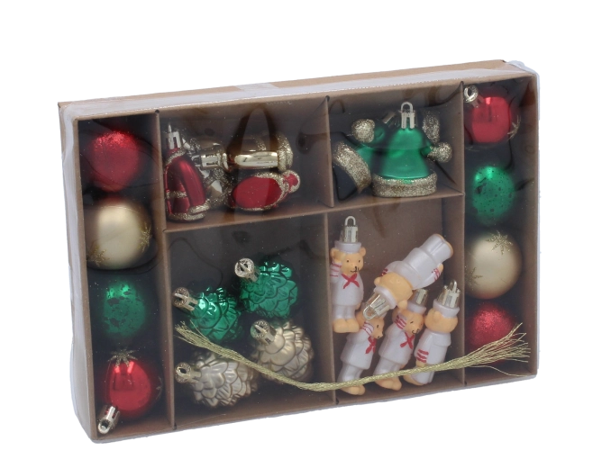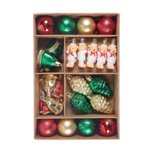 Dette elegante sæt byder på en afbalanceret blanding af overfladebehandlinger, som passer perfekt sammen og får ethvert juletræ til at stråle. Den gyldne farve er tidløs, let at kombinere med andre dekorationer og skaber en varm, festlig stemning i hjemmet.