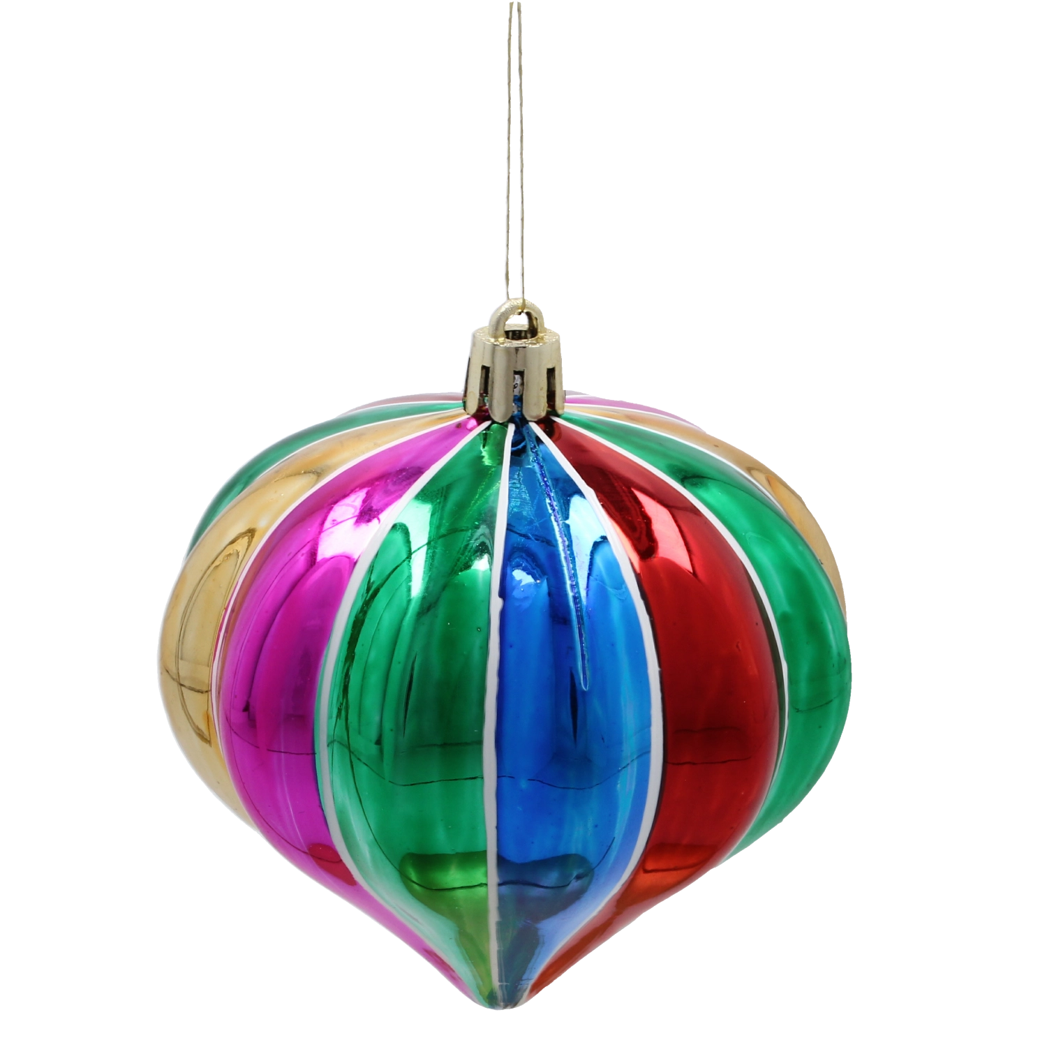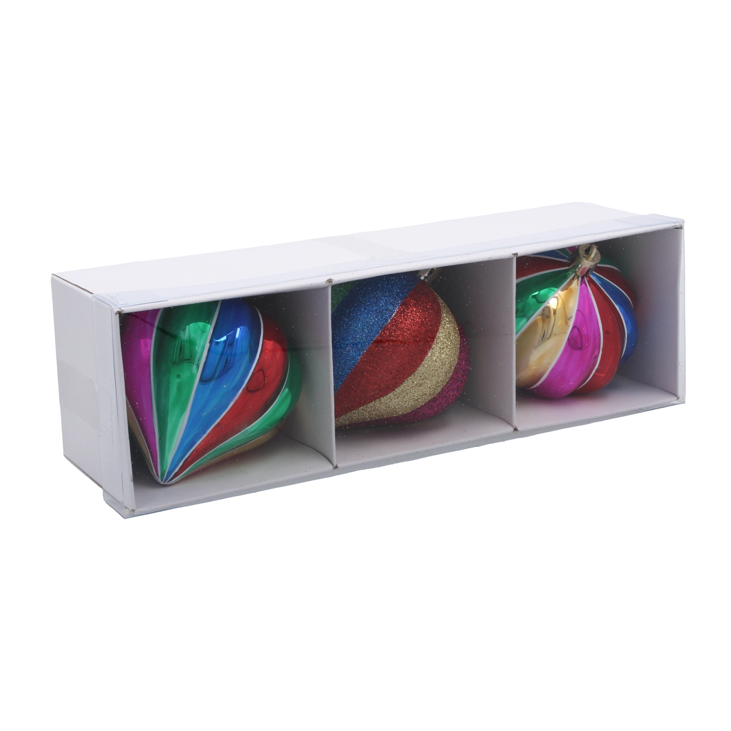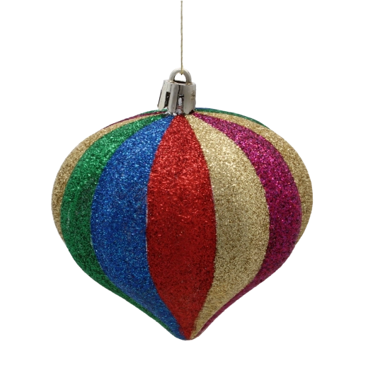 Vertikale flerfarvede striber og en blank overflade fanger straks opmærksomheden og lyser ethvert juletræ og enhver dekoration op.