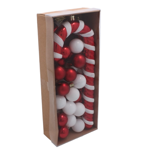 Sæt med julepynt 32 stk – sukkerrør 25 cm og kugler 3 cm, splintfrie