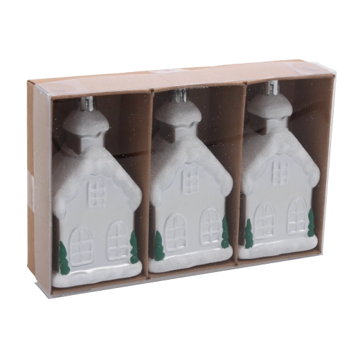 Tilføjer du træet eller din festlige dekoration et sæt med tre husornamenter, får du øjeblikkeligt en magisk og hyggelig effekt. Den omhyggelige udførelse med sans for detaljer og den lette, men robuste plast sikrer lang holdbarhed og sikker brug.