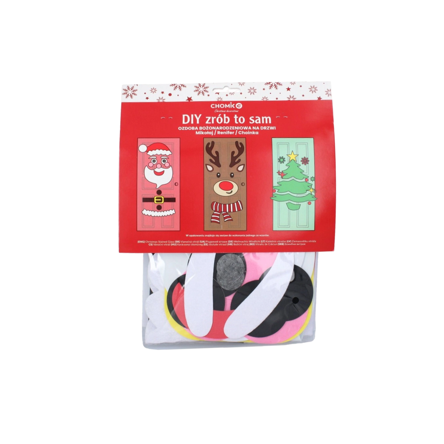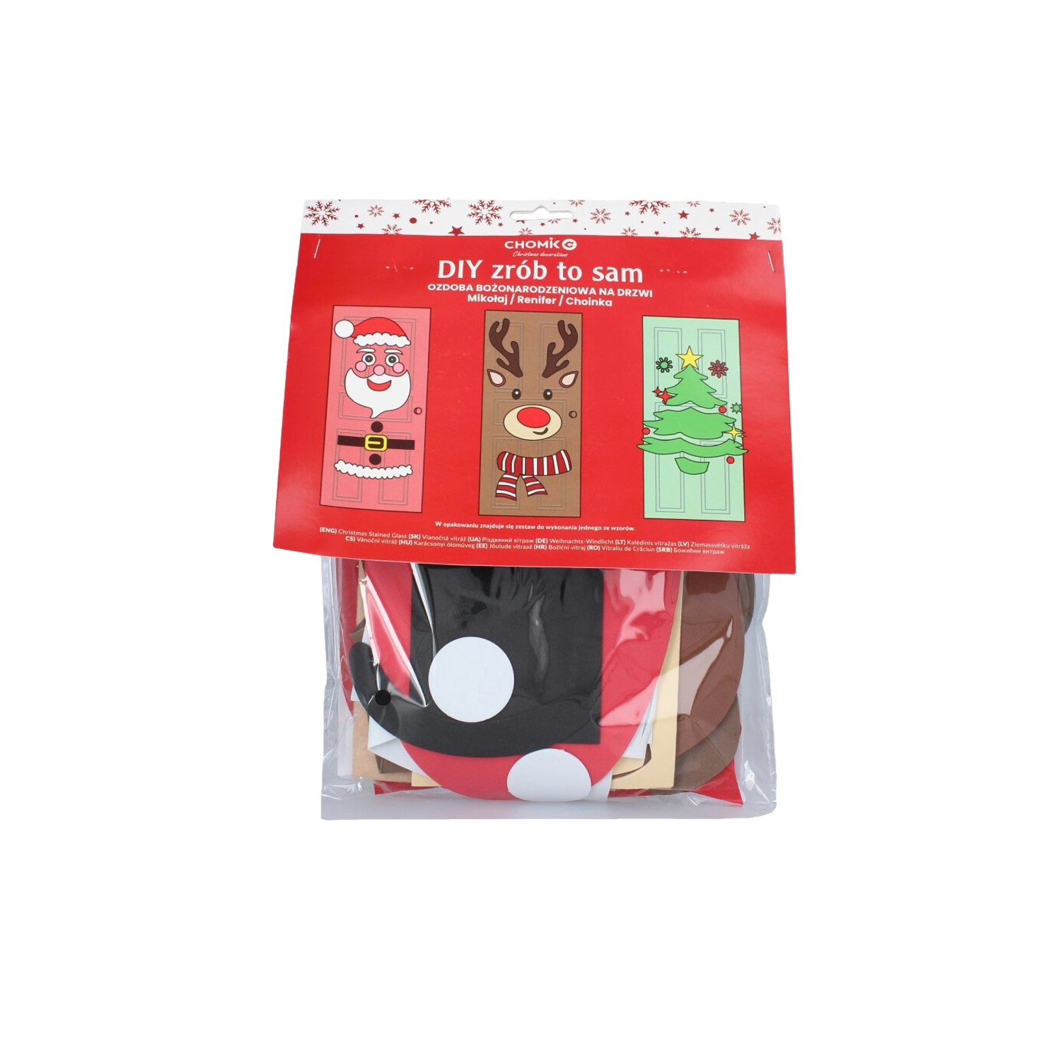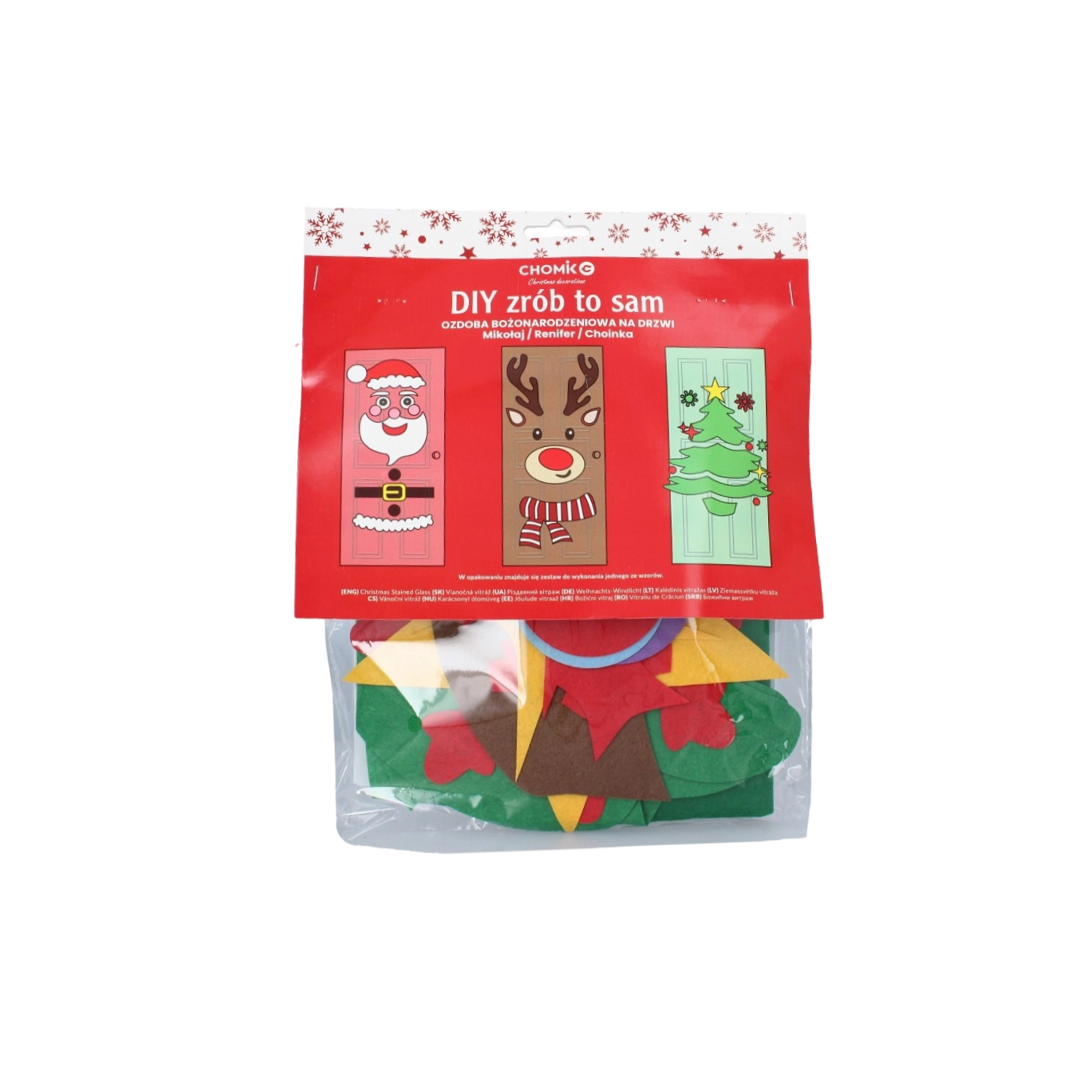 Denne festlige dekoration forvandler enhver indendørs eller udvendig dør til et iøjnefaldende juleelement. De bløde filt- og selvklæbende dele sættes nemt fast og kan omarrangeres når som helst – ideelt for både børn og voksne. Vælg mellem motiverne juletræ, JULEMAND eller rensdyr, og skab en original udsmykning helt efter din smag.