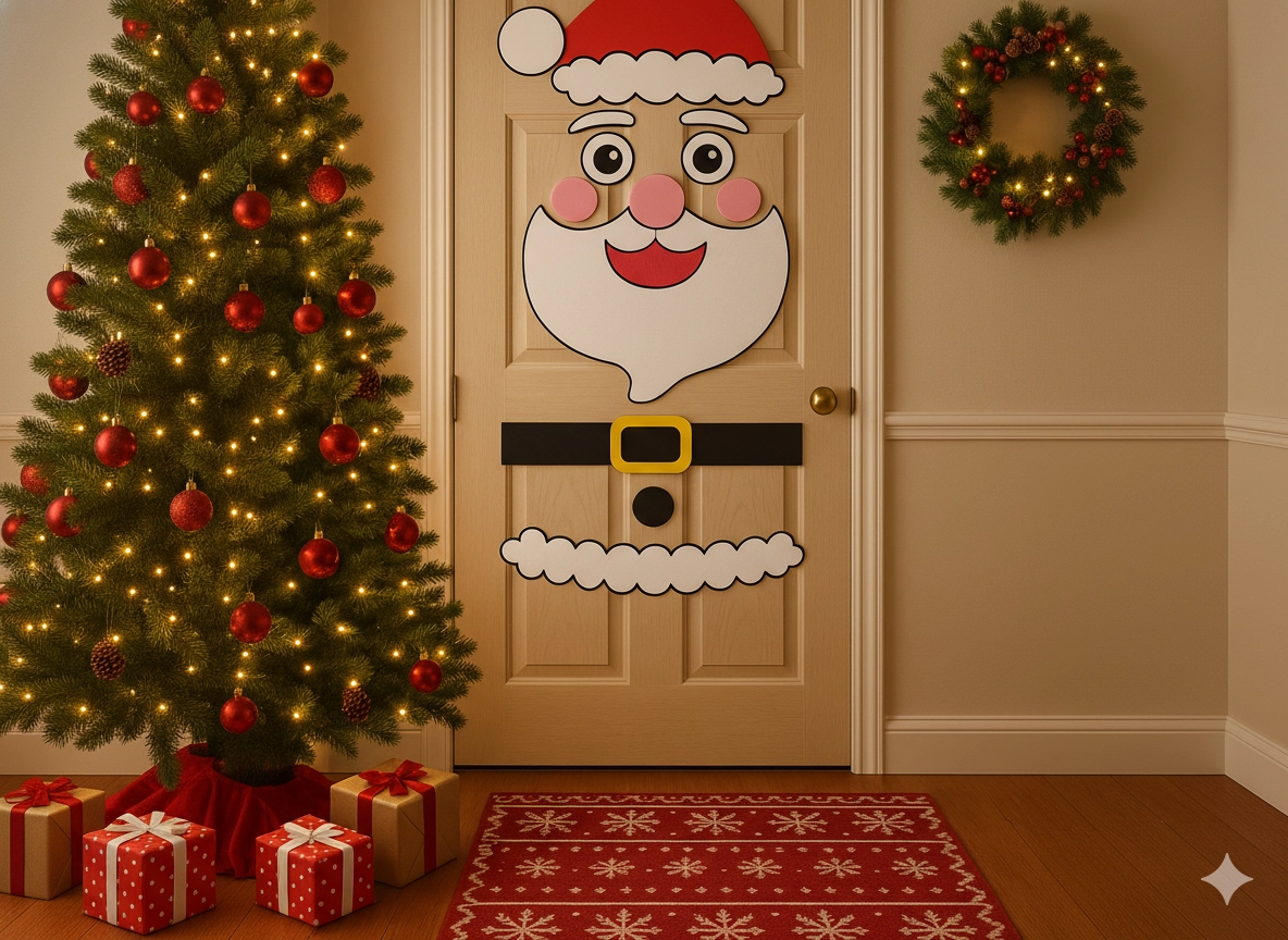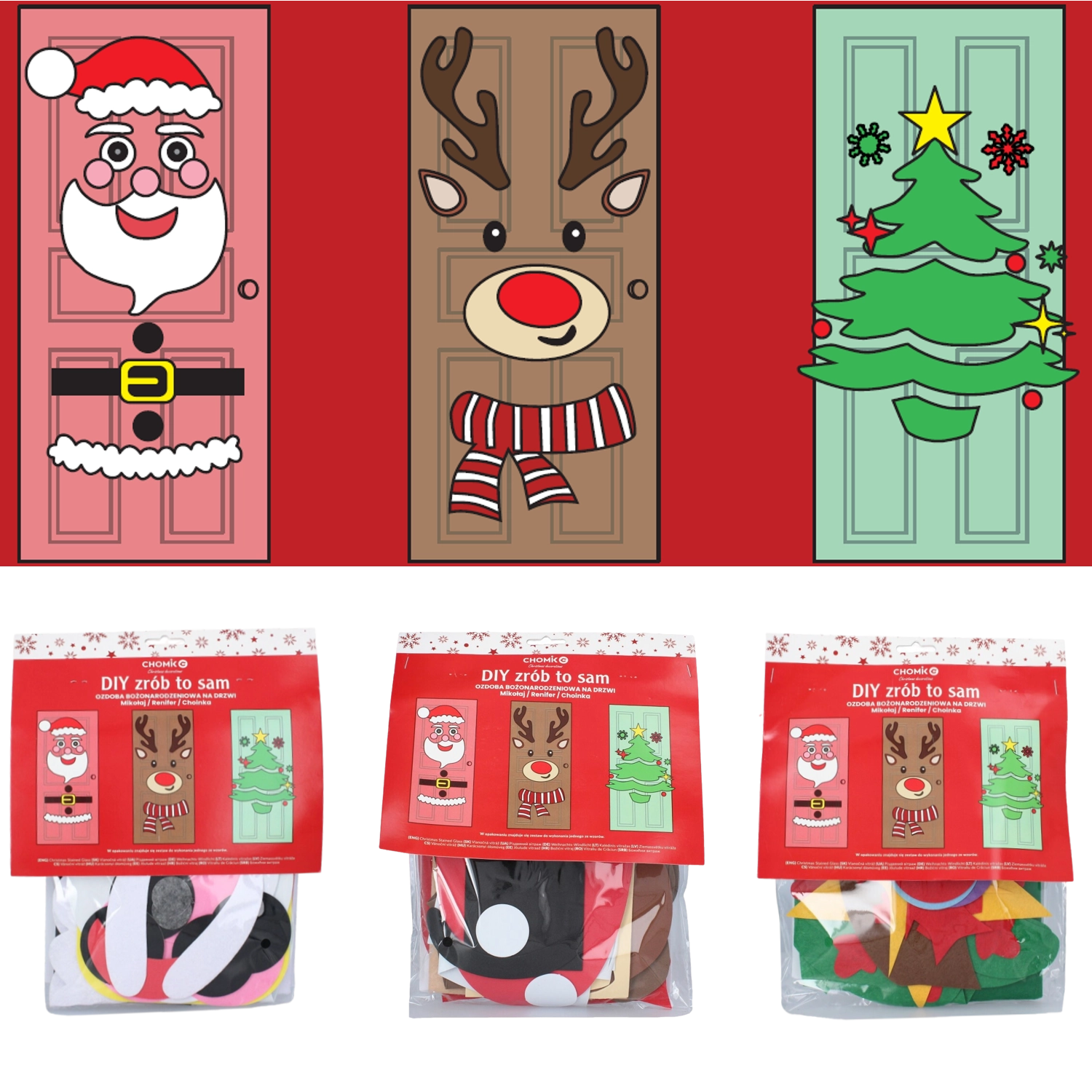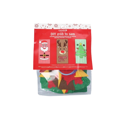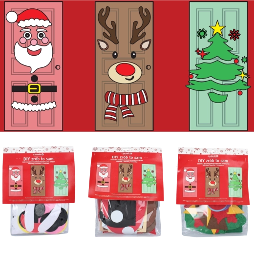 Denne festlige dekoration forvandler enhver indendørs eller udvendig dør til et iøjnefaldende juleelement. De bløde filt- og selvklæbende dele sættes nemt fast og kan omarrangeres når som helst – ideelt for både børn og voksne. Vælg mellem motiverne juletræ, JULEMAND eller rensdyr, og skab en original udsmykning helt efter din smag.