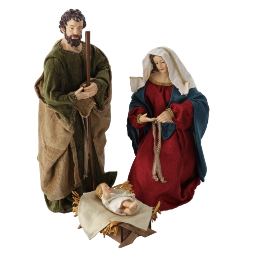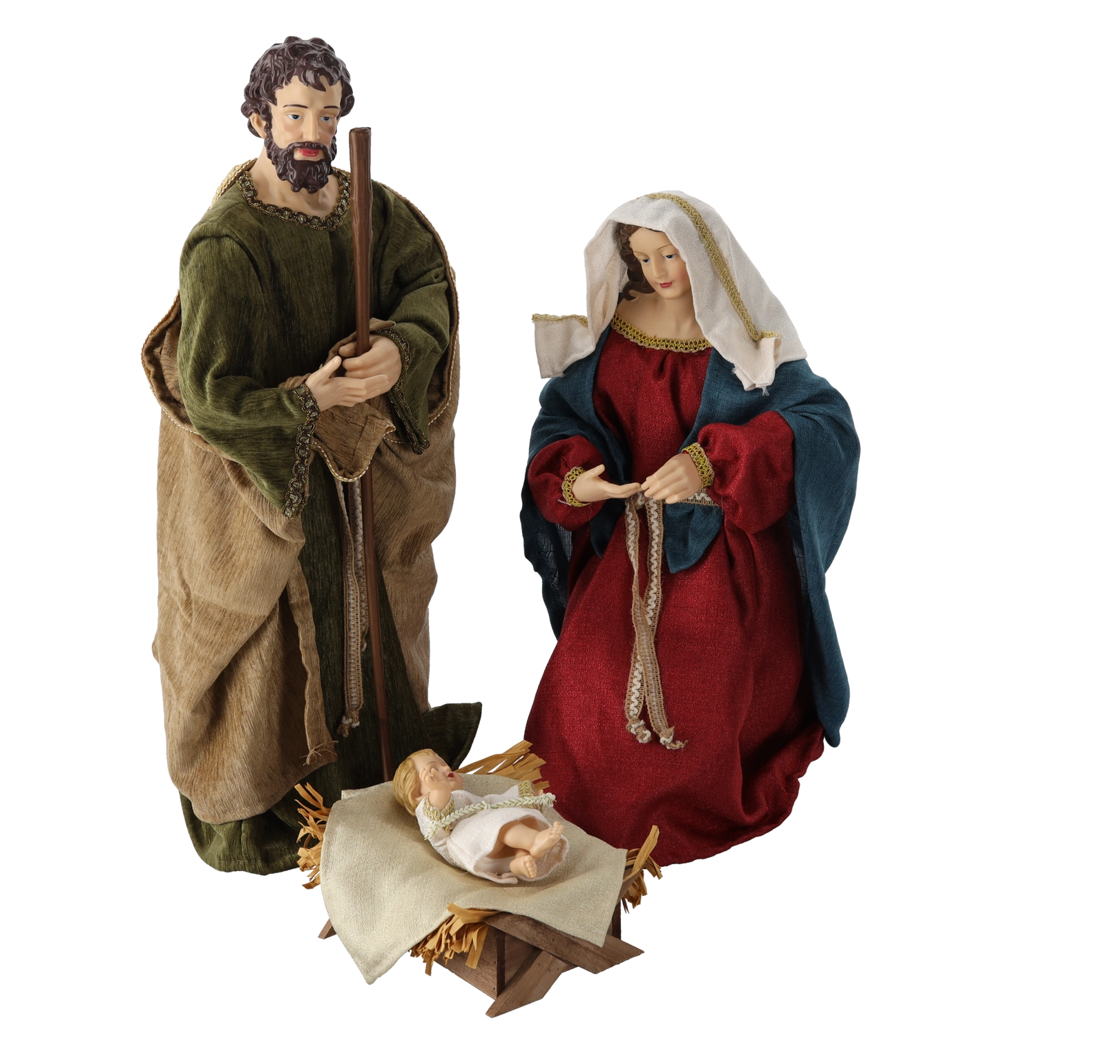 Bring en varm og festlig julestemning ind i dit hjem med et elegant sæt af tre håndforarbejdede figurer, der forestiller Den Hellige Familie. Tidløst design, klassiske farver og en repræsentativ højde på op til 68 cm gør dem til en iøjnefaldende dekoration til hjemmet, kirken og kommercielle rum.