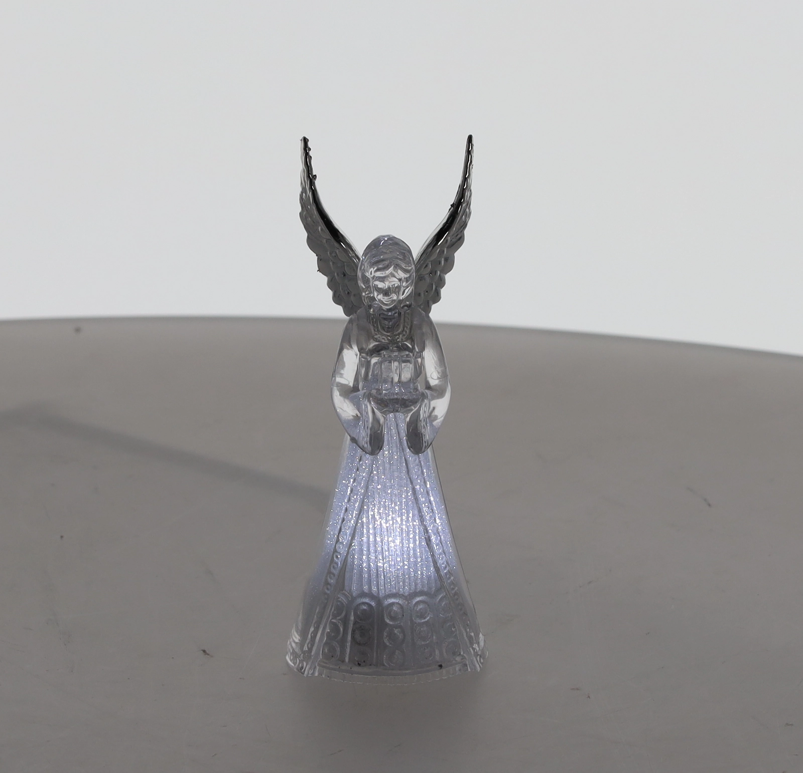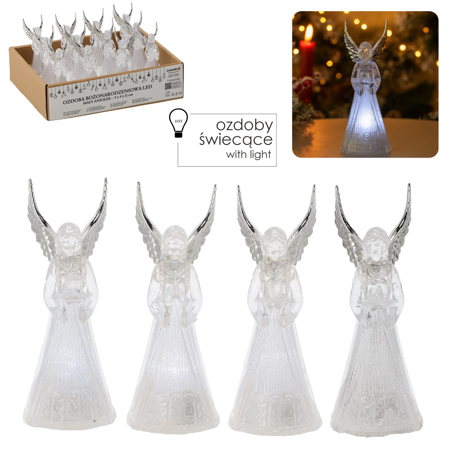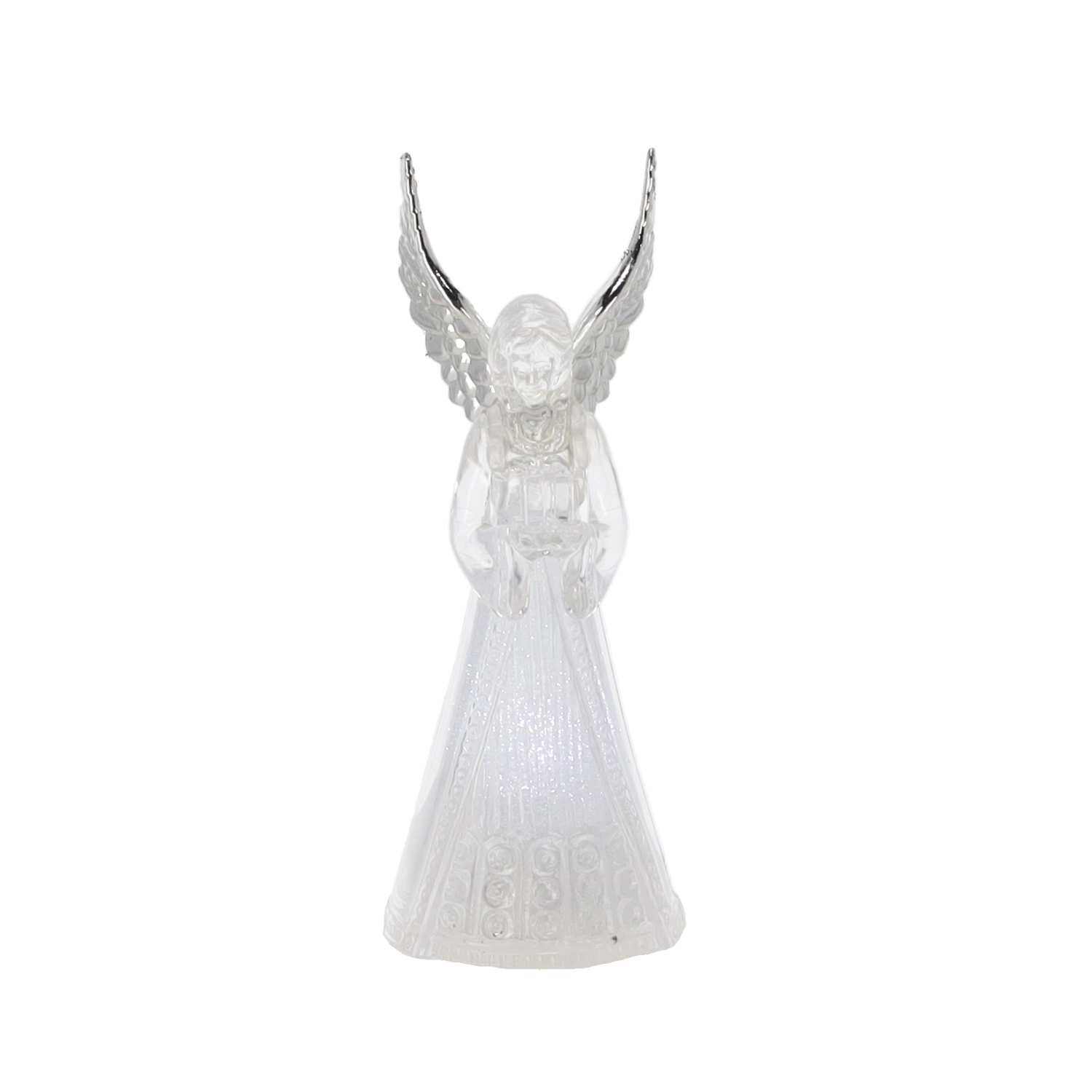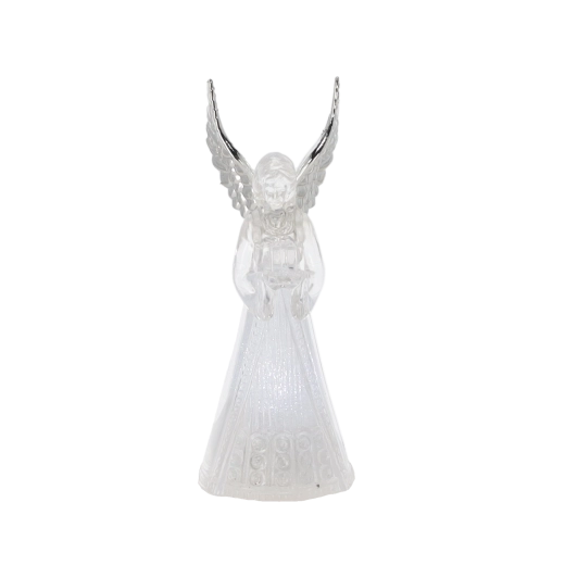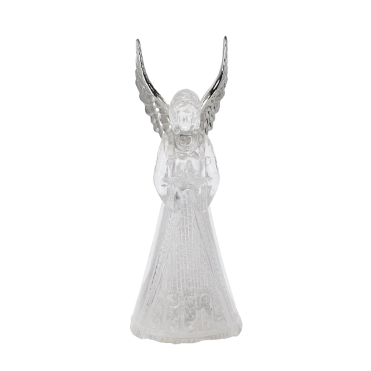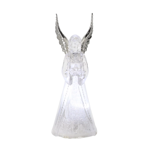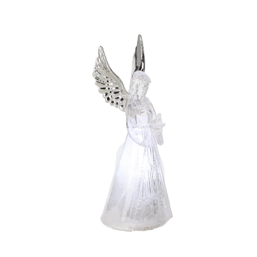 Denne lysende englefigur bringer ro og julestemning ind i dit hjem. Den transparente krop lader koldt hvidt LED-lys trænge smukt igennem og diffundere, hvilket virker elegant og diskret. Takket være det lille design kan den nemt placeres på bord, kommode eller ved vinduet.