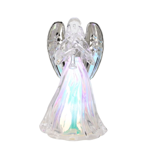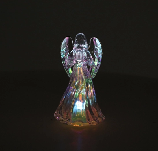 LED-belysningen udsender et rent koldt hvidt lys, som fremhæver engelens detaljer og giver julepynten en rolig, elegant atmosfære.