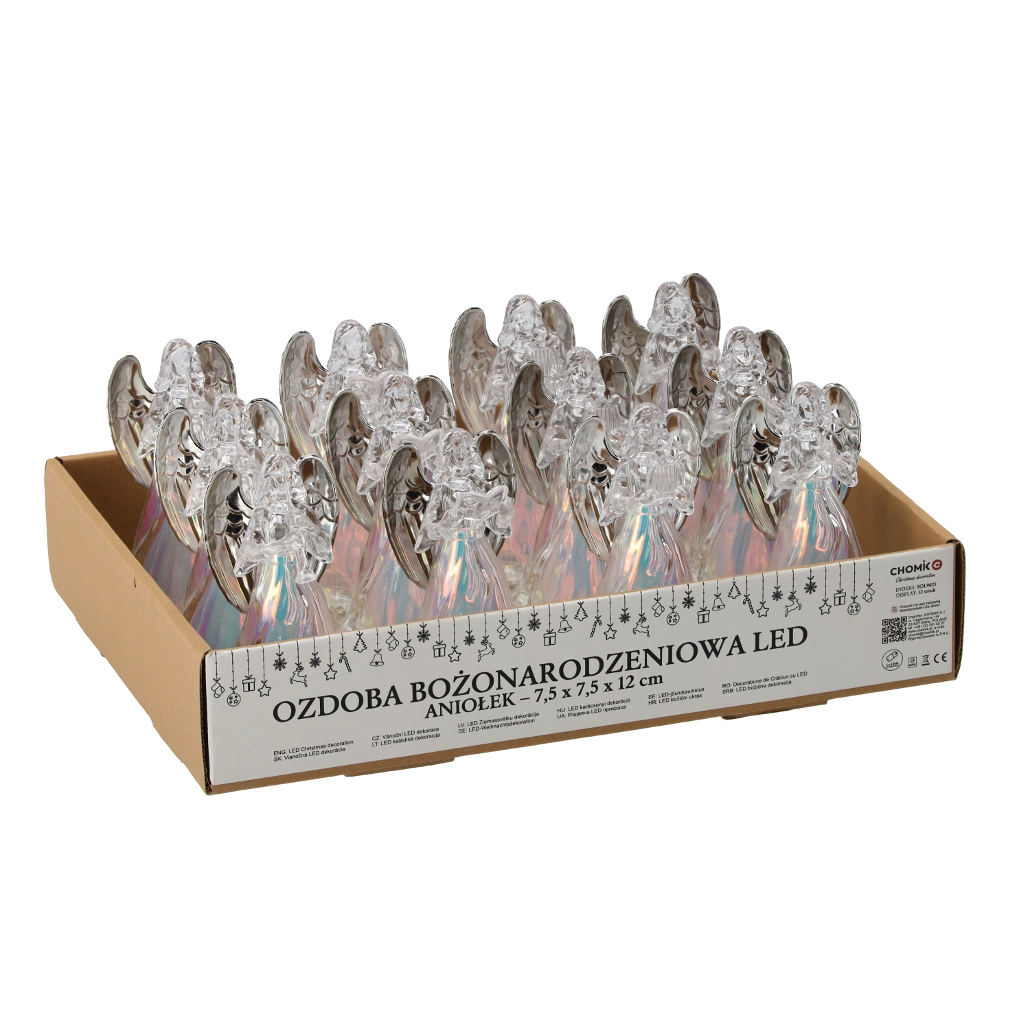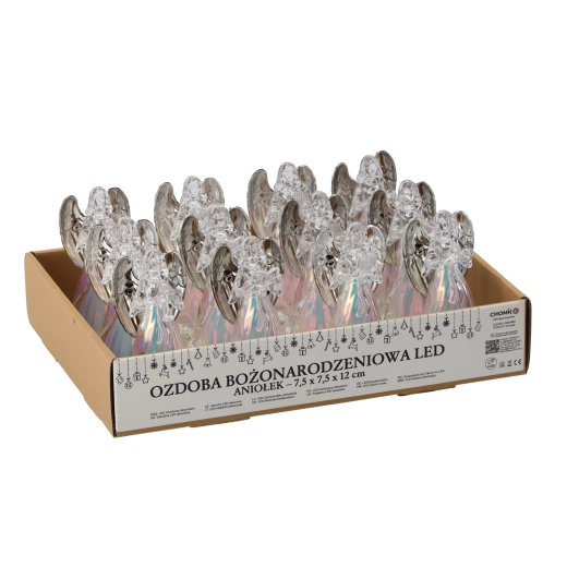 Takket være de kompakte mål 7,5 × 12,5 cm passer englen perfekt på det festlige bord, en hylde eller i børneværelset. Belysningen, der drives af 3 LR44-batterier (inkluderet), muliggør øjeblikkelig brug uden kabler. Modellen fås i forskellige varianter, som adskiller sig ved de små genstande, englene holder i hænderne.