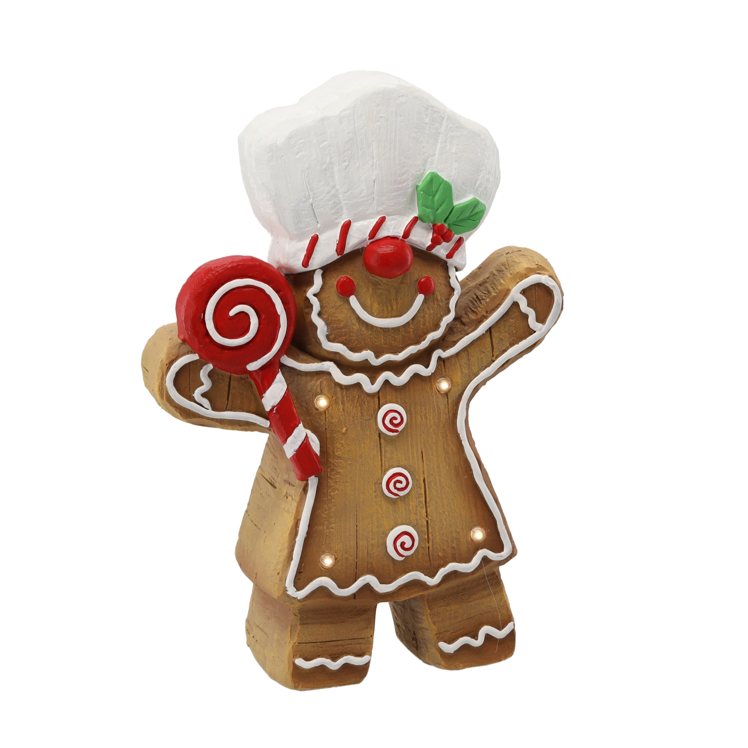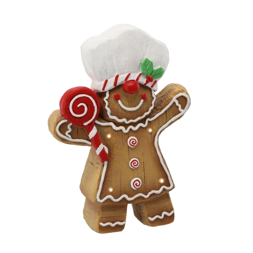 Denne honningkagefigur med kokkehat og søde konditordetaljer liver ethvert julehjørne op. De integrerede varme LED-dioder skinner blidt gennem de dekorative detaljer og skaber en behagelig julestemning både dag og aften.