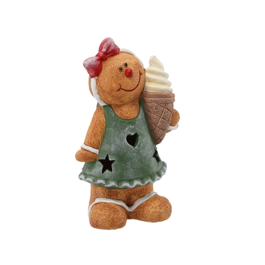 En sød julefigur af en peberkagemand med integreret LED-belysning, der lyser ethvert interiør op. Takket være de kompakte mål passer den perfekt på en hylde, kommode eller det festlige bord. Varmt LED-lys, keramisk udførelse og klar til brug med det samme takket være de medfølgende batterier skaber en hyggelig, festlig atmosfære.
